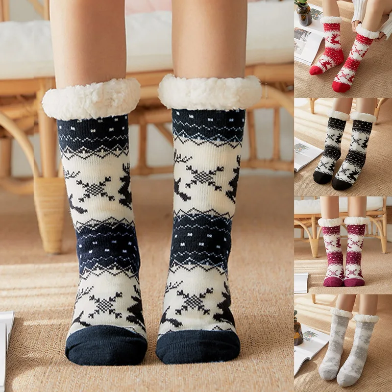 Популярные Рождественские носки, женские осенне-зимние носки до середины икры для комнаты, домашние тапочки для сна, носки с флисовой подкладкой, утепленные носки для ковра