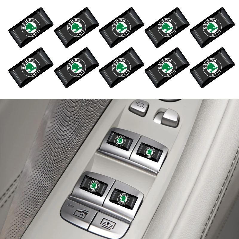 10 шт., наклейки на Автомобильное рулевое колесо, центральное крыло, окно, логотип, наклейка для Skoda Octavia Fabia Rapid Yeti Superb Octavia A 5 A 7 2