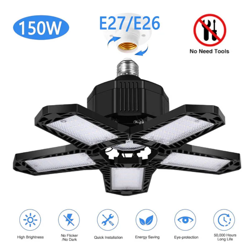 Светодиодная лампа для гаража, 150 Вт, лампа E27, складные вентиляторные лопасти, лампа для гаража FOCO, светодиодный ный светодиодный рабочий светильник для склада, парковки
