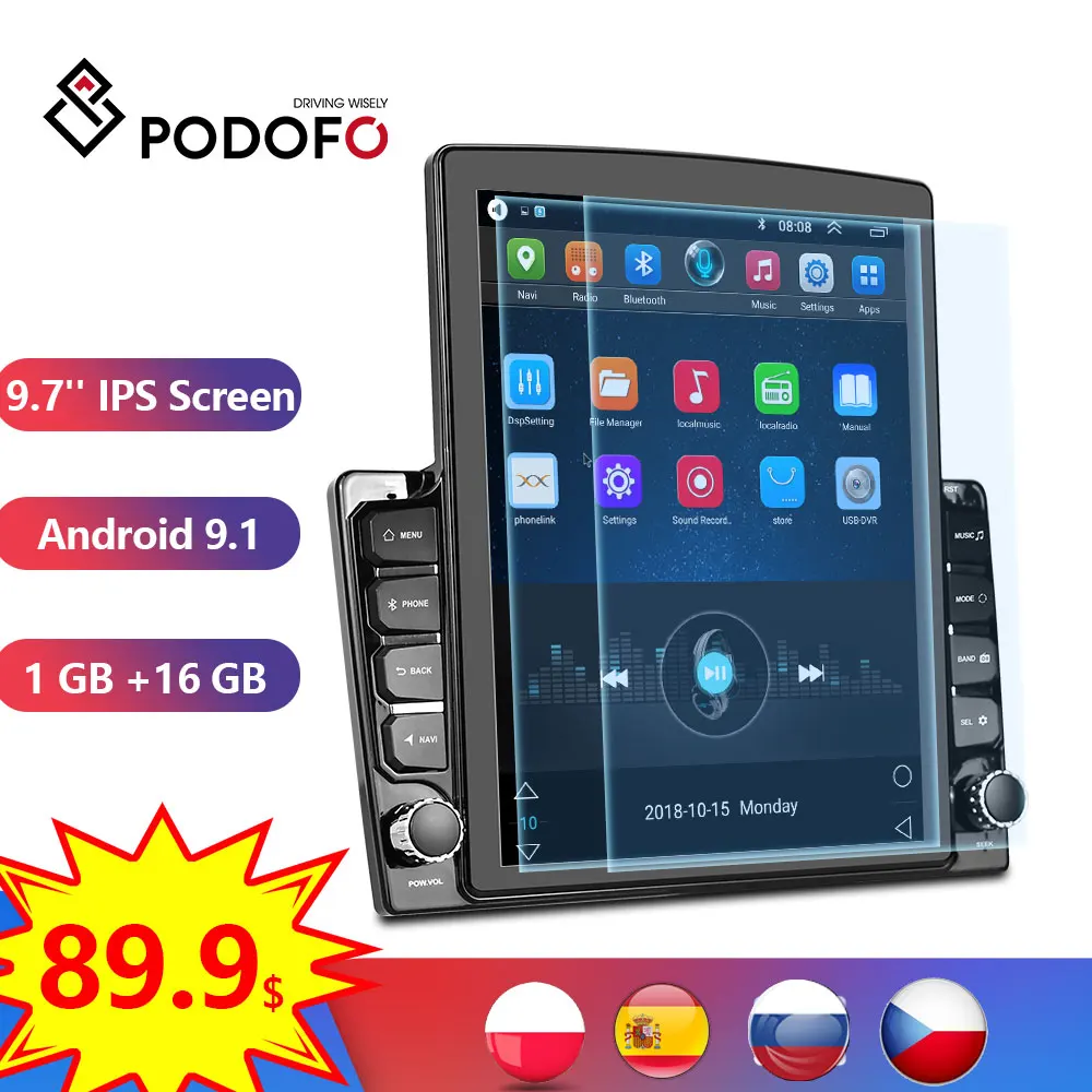 Podofo 2 din android автомобильное радио Bluetooth стерео радио GPS WIFI 9,7 ''вертикальный экран MP5 плеер Мультимедиа Зеркало Ссылка поддержка DVR задняя камера Авторадио