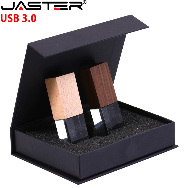 Флэш-накопители JASTER USB 3,0, цветная коробка для печати, флэш-накопитель, деревянная флэш-карта памяти с кристаллами, стандартная флэш-память, 16 ГБ, 32 ГБ, 64 ГБ, 128 ГБ, U-диск