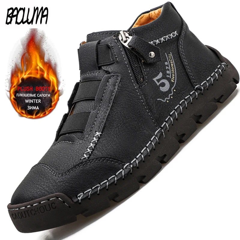 Мужские зимние ботинки, уличные мужские зимние ботинки, кожаные мужские ботинки ручной работы в западном стиле, классические мужские мотоциклетные ботинки, Мужская Рабочая обувь