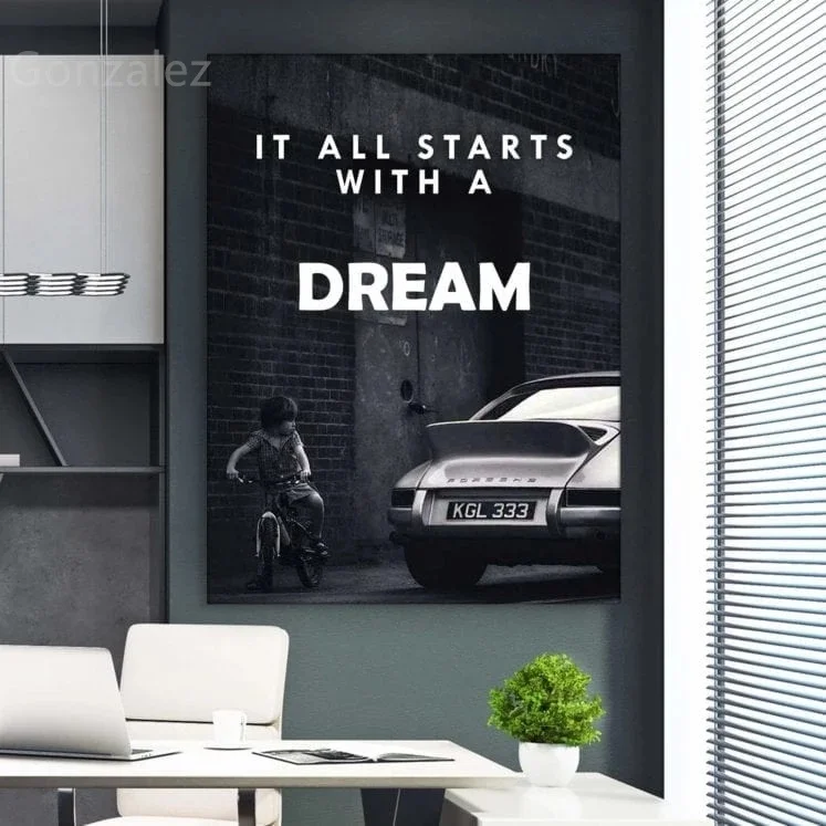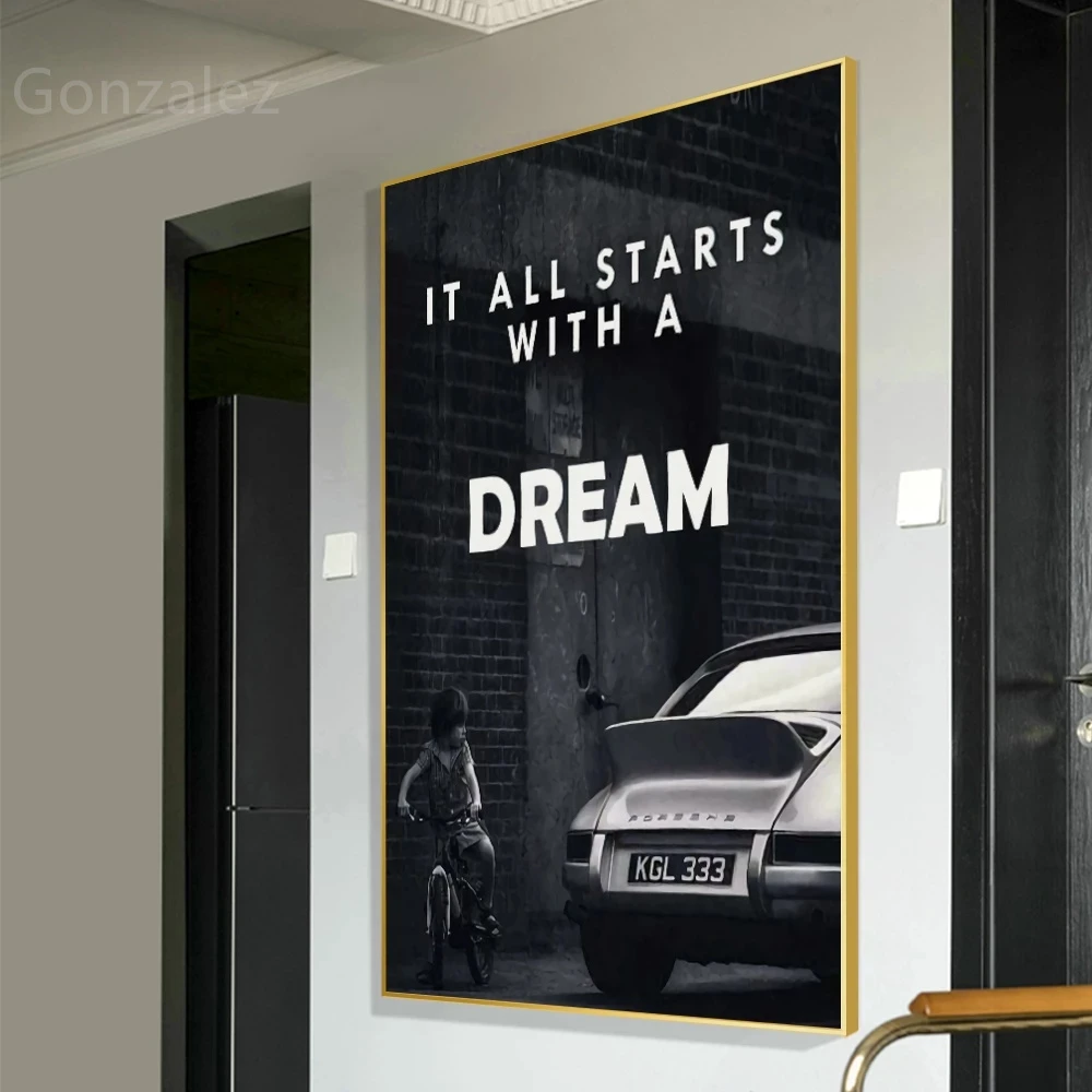 Картина на холсте Черно-белая It All Start with A Dream, плакаты, печать, декор для комнаты, Настенная картина, эстетическое украшение для дома