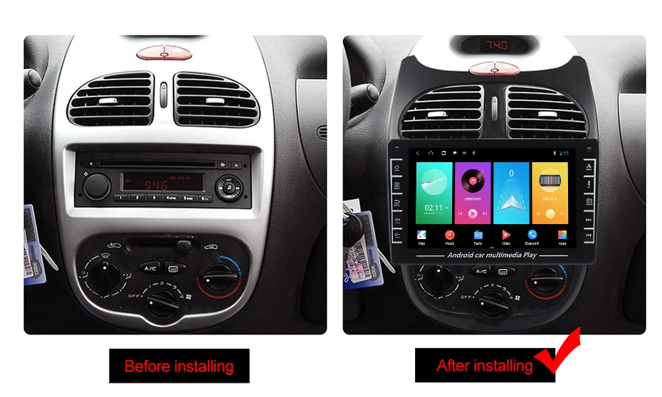 Система Android, автомобильный стерео Мультимедийный видеоплеер 2.5D IPS для Peugeot 206 2004 - 2007 2008, автомобильное радио, GPS-навигация BT Carplay