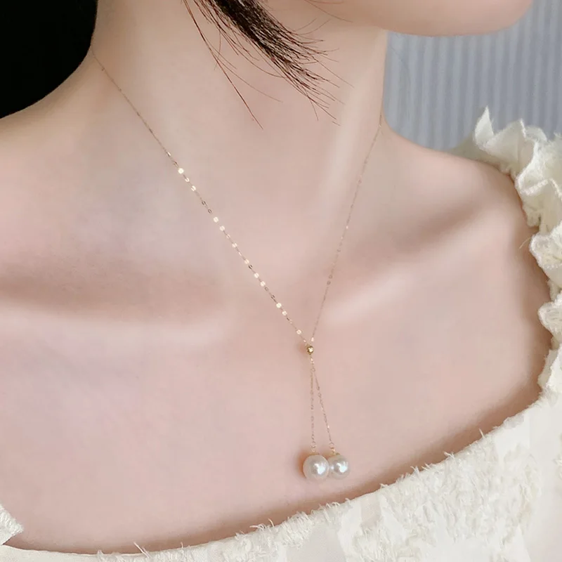 NYMPH чистое 18K желтое золото Ожерелье Подвеска Жемчужное ювелирное изделие Au750 натуральный освежитель 7-8 мм Изящные женские вечерние ювелирные изделия подарок