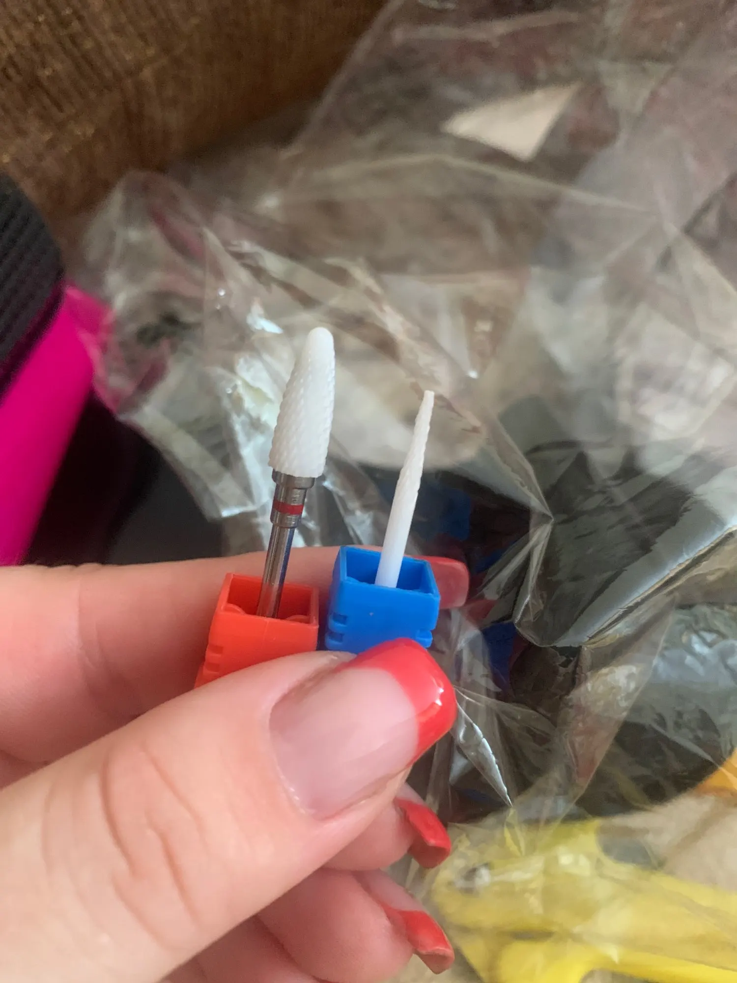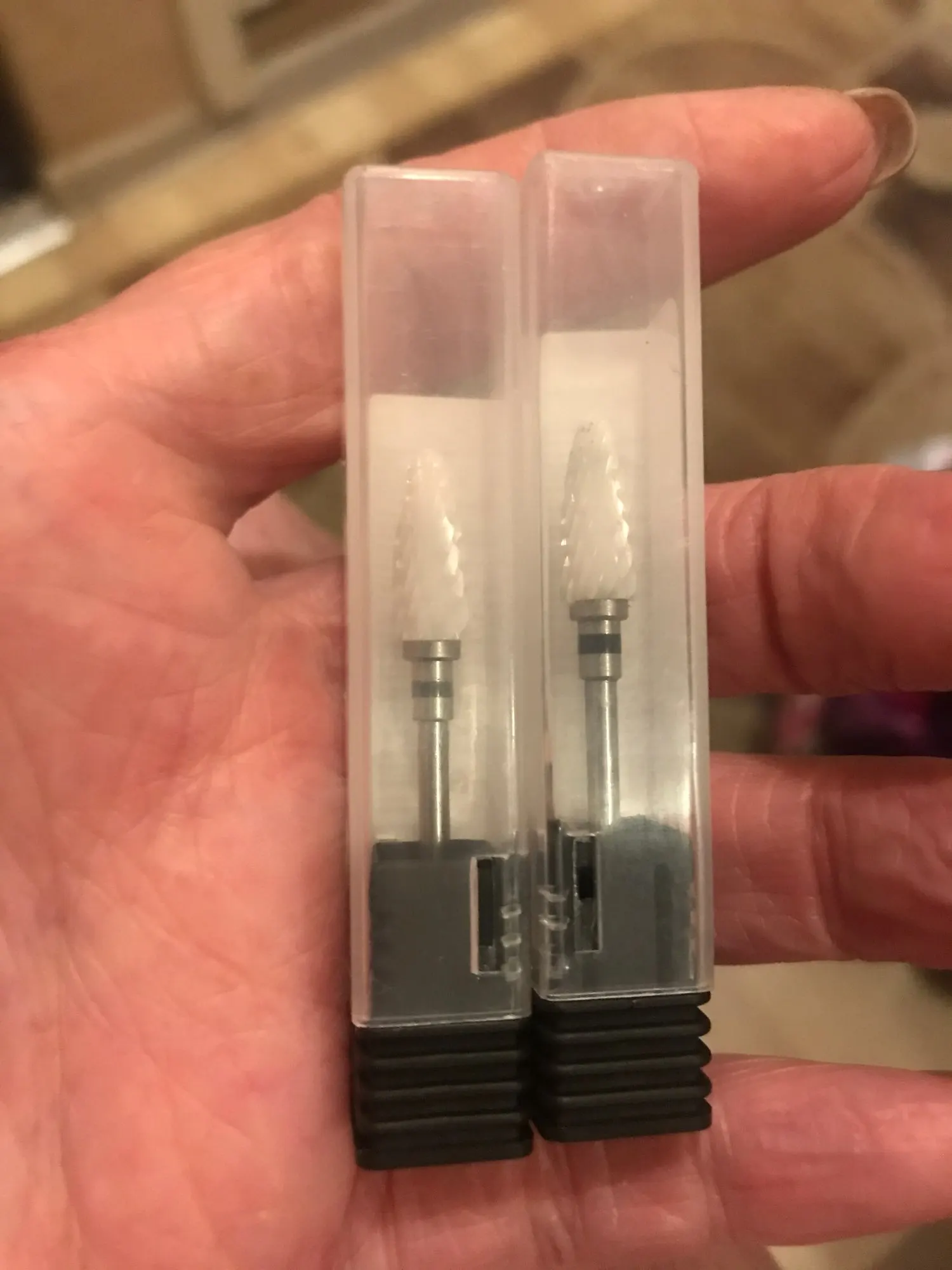 Фреза пришла в сборной посылке за 19дней, заказывала фрезу в прошлый раз для опила изнутри ноготка, на фото продавца она на конце была заужена а пришла просто с острым носиком, совсем не то, что я заказала, пришлось заказать эту, чтобы можно было подобраться под ноготок к клиенту с пухлыми пучечками, думаю этой будет удобнее, чем той, что пришла ко мне первая, они короче чем обычные фрезы, но работать можно