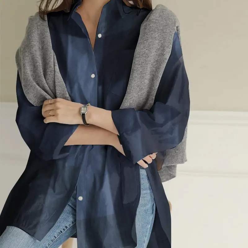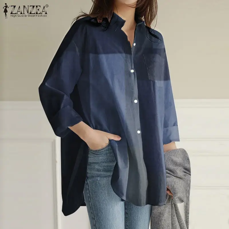 Блузка ZANZEA женская оверсайз с лацканами, Офисная рубашка с длинн...