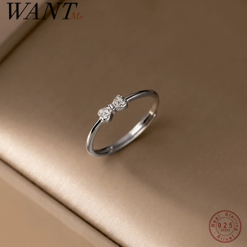 Женское регулируемое кольцо WANTME, из стерлингового серебра 925 пробы с милым бантом из циркония, модные корейские ювелирные украшения для дня рождения