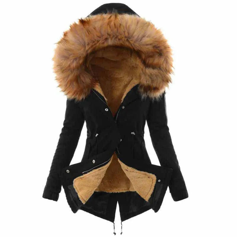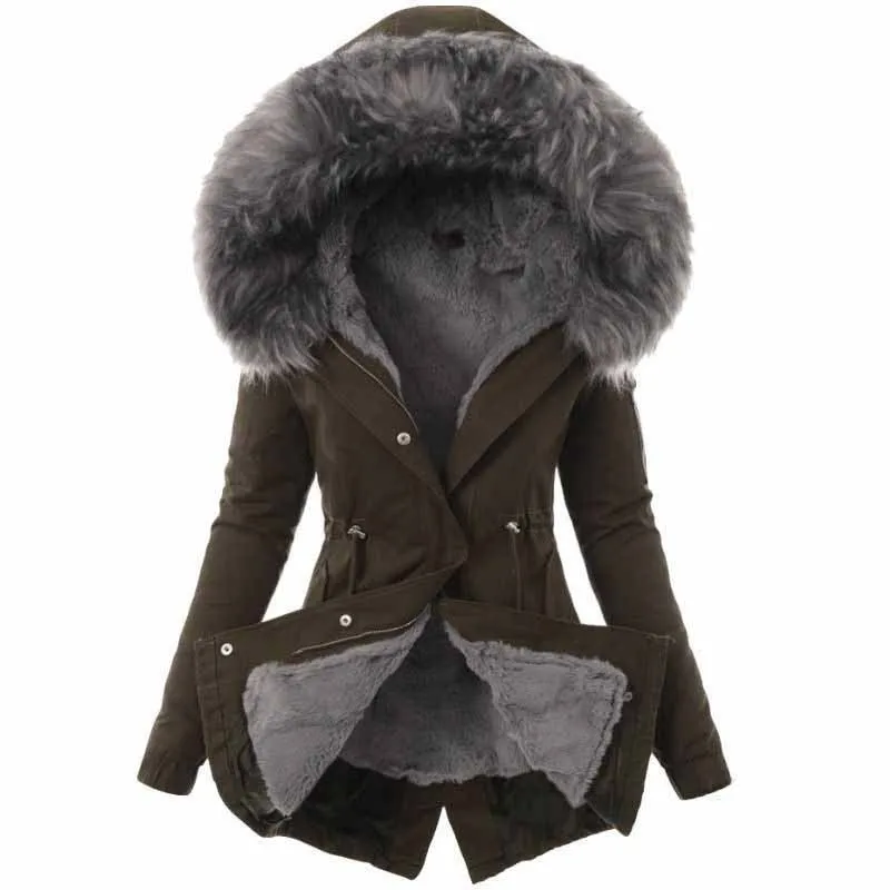 Осенне-зимние парки с меховым воротником, куртки, женская модная Толстая теплая винтажная куртка с капюшоном, женское облегающее повседневное женское пальто на молнии