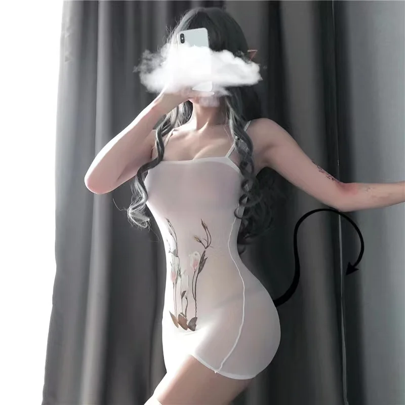Белое мини-платье, сексуальное нижнее белье, ночная рубашка с принт...
