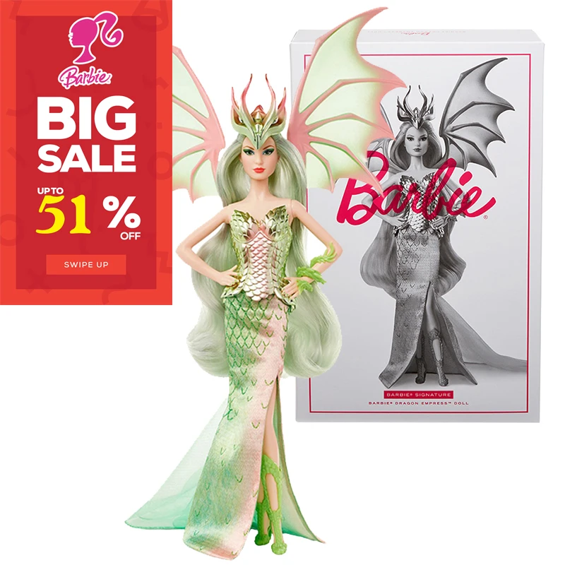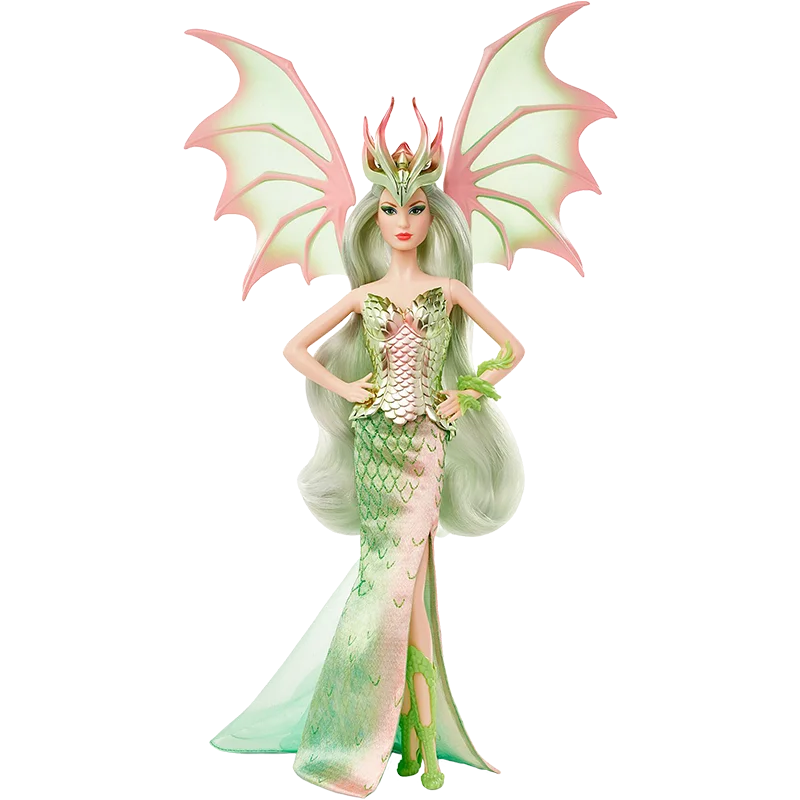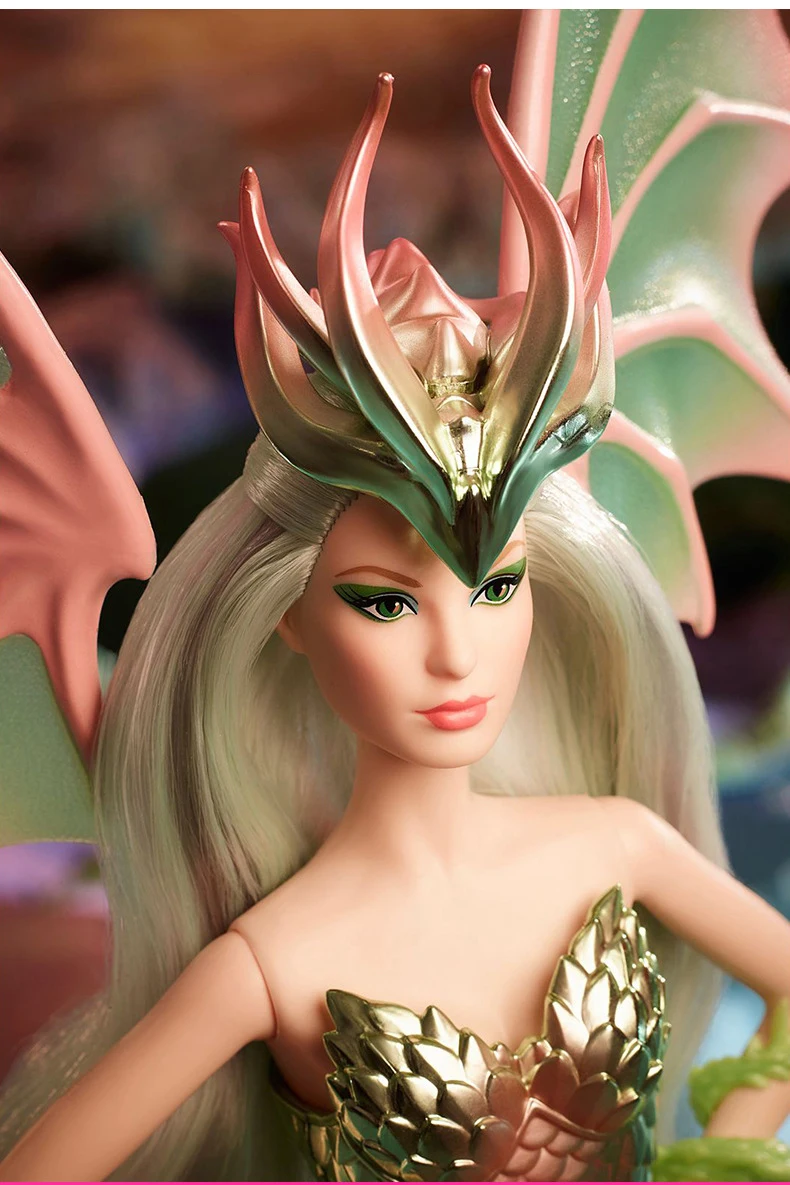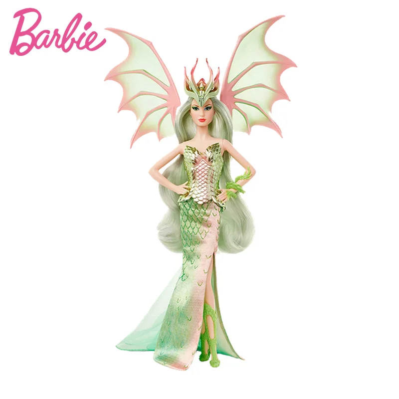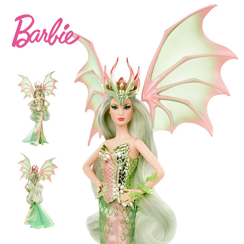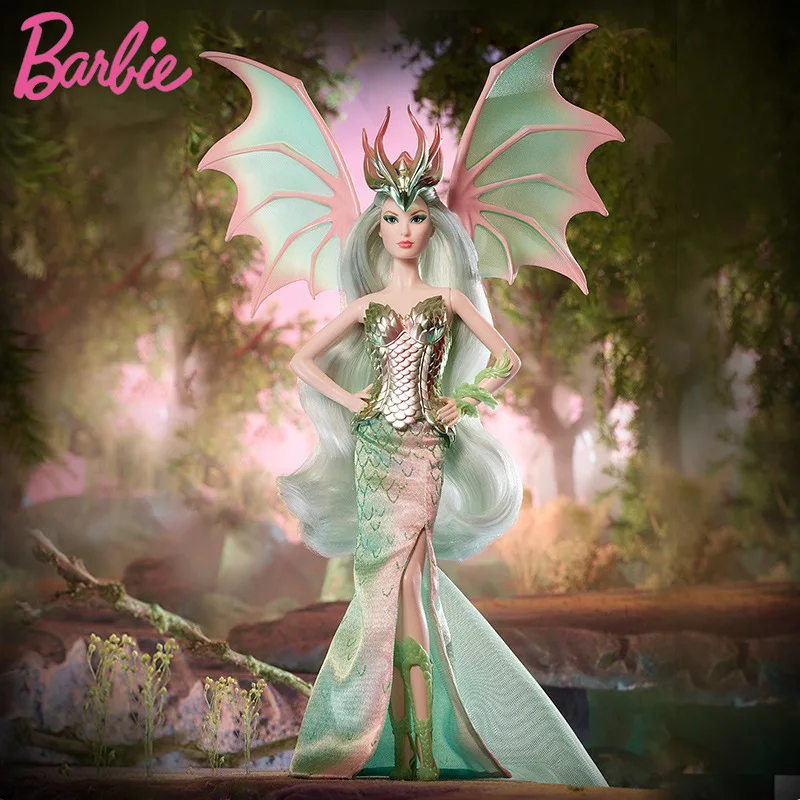 Кукла Барби в виде дракона станет идеальным подарком для коллекционеров и любителей фантазий. Включает кукольную подставку и сертификат подлинности. Коллекция золотых этикеток.