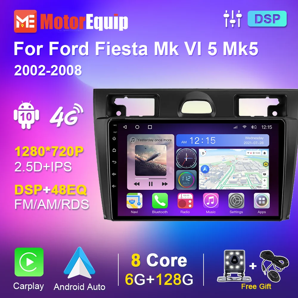 Автомагнитола для Ford Fiesta Mk VI 5 Mk5 2002 2003-2008, мультимедийный проигрыватель с навигацией, IPS экраном, Wi-Fi, Carplay, 4G, 2din, Android, авто