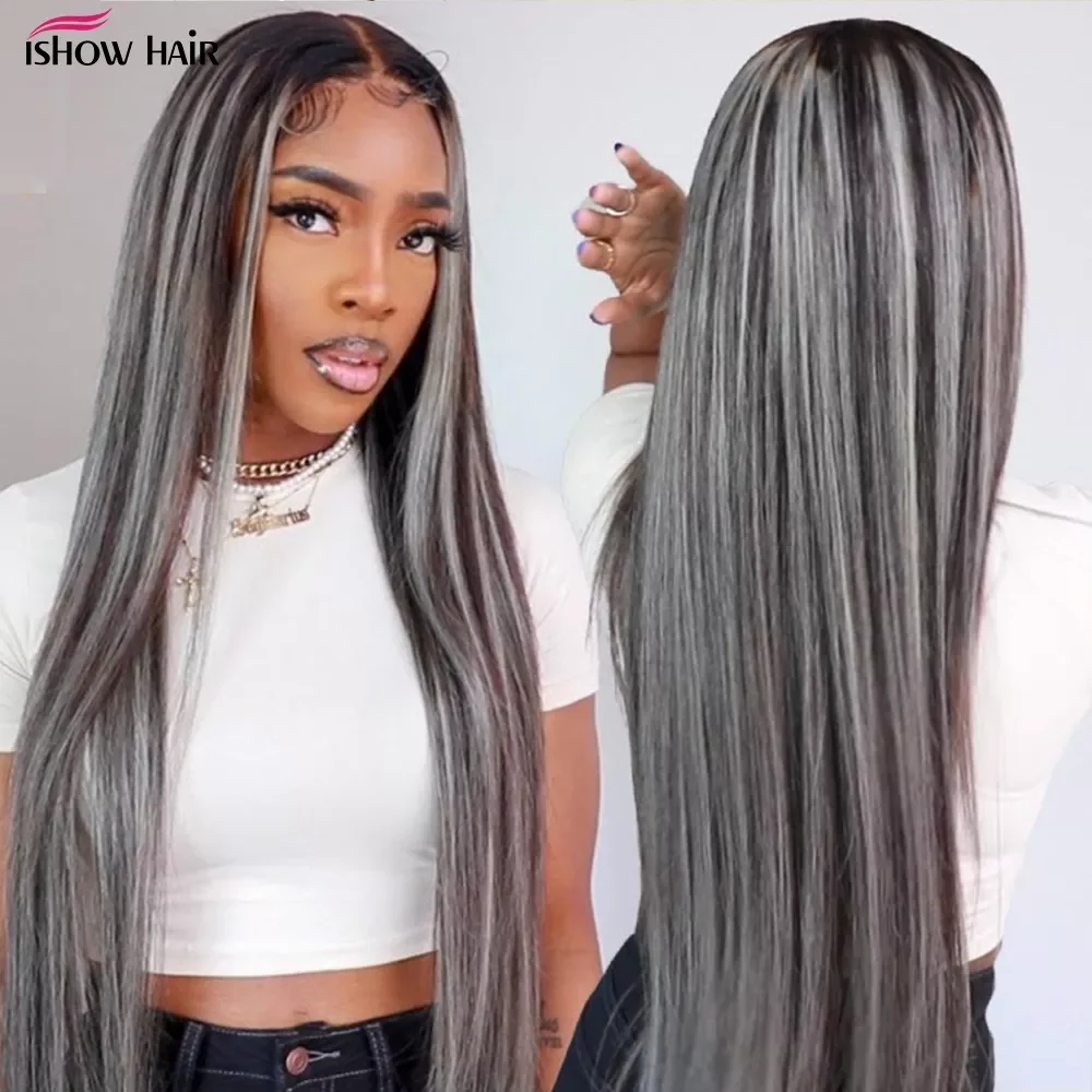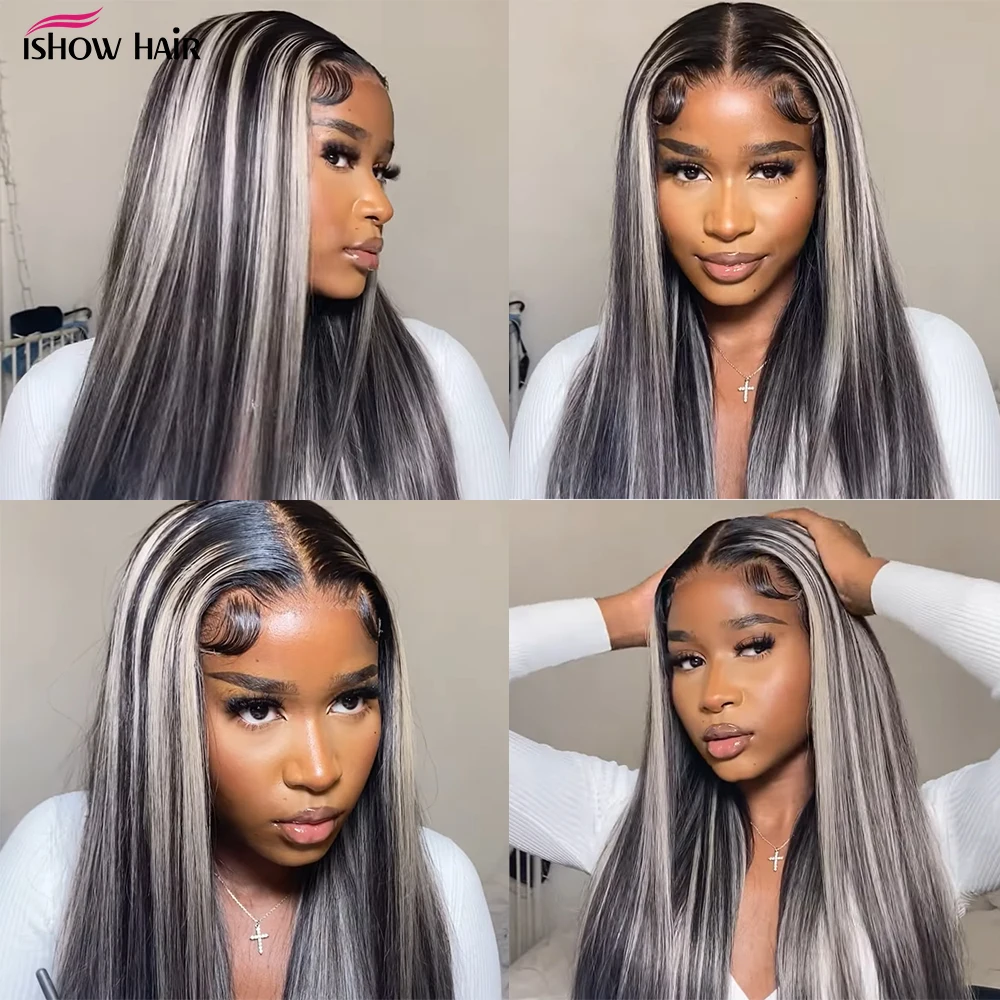 Wigs StyleHighlight Grey Lace wig,Human hair wig,Blonde wig