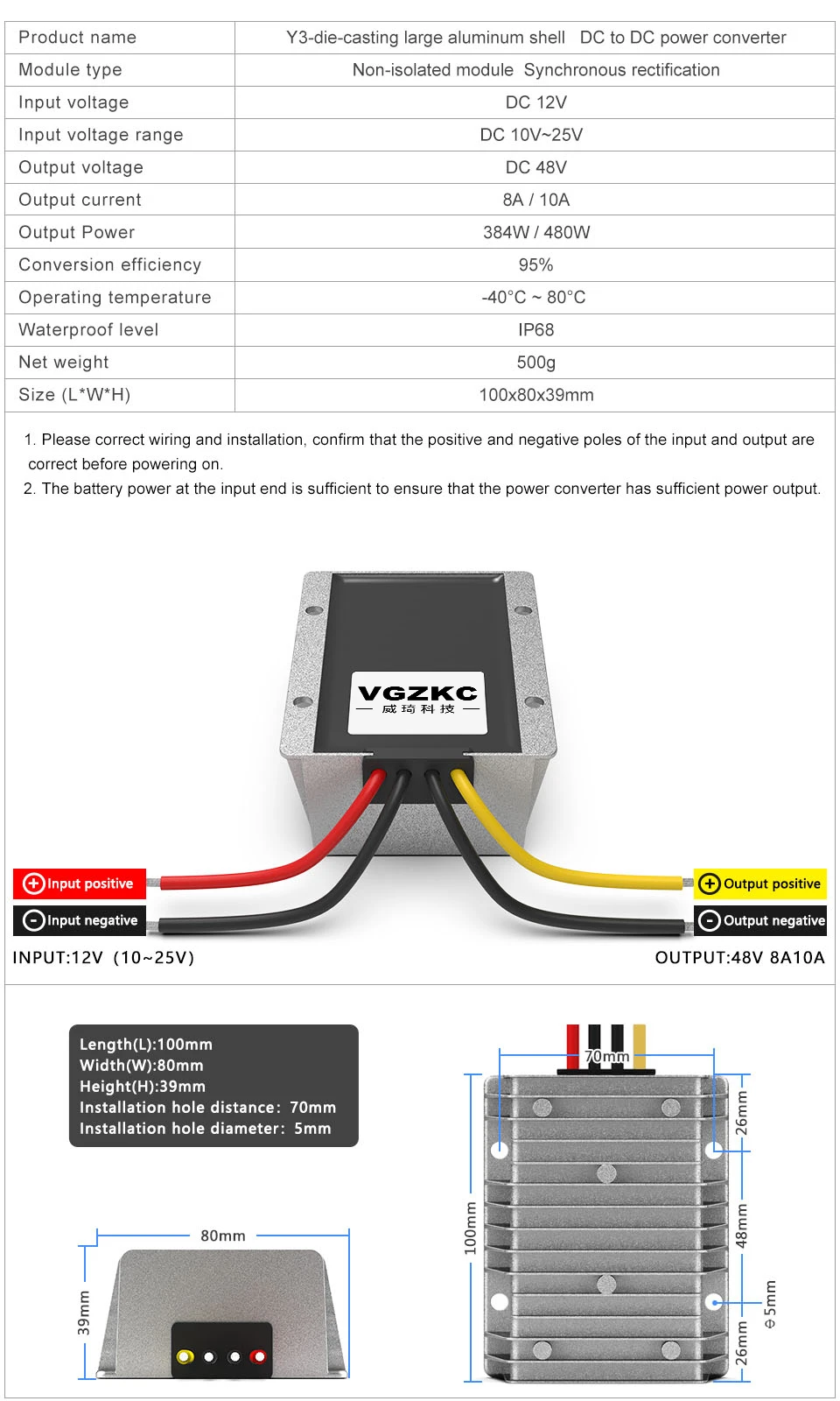 Регулятор мощности VGZKC, преобразователь постоянного тока 12 В в 48 В, 1 А, 3 А, 5 А, 6 А, 8 А, 10 А