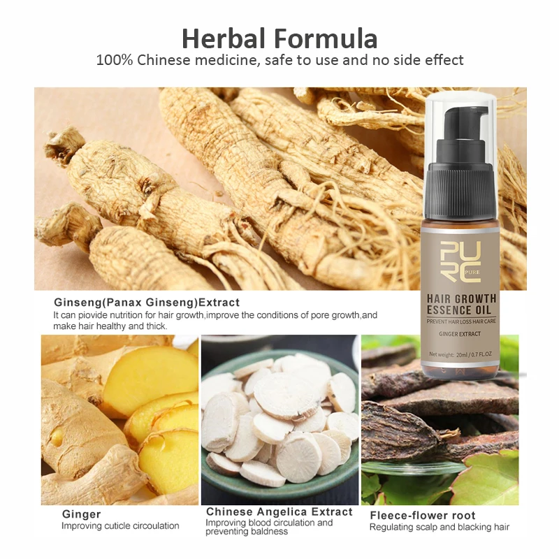 Имбирное масло для роста волос PURC, предотвращает выпадение волос, стимулирует рост волосяного фолликула, кровообращение, регенерацию волос, эфирное масло