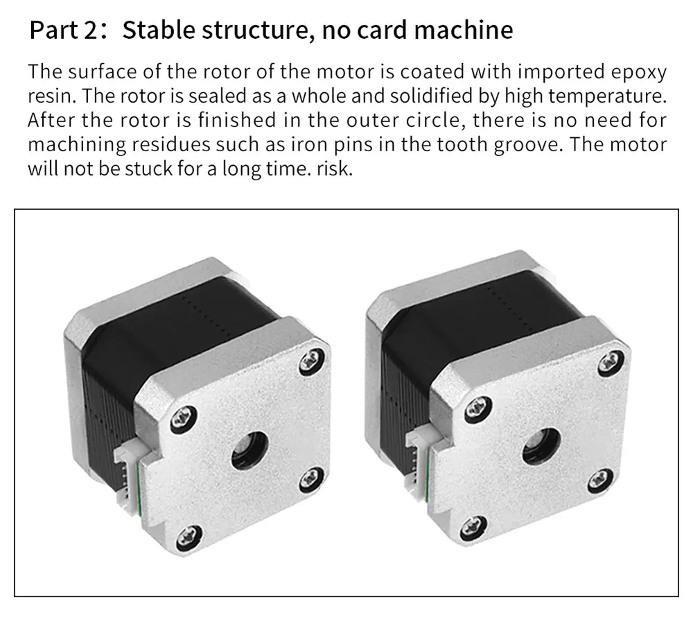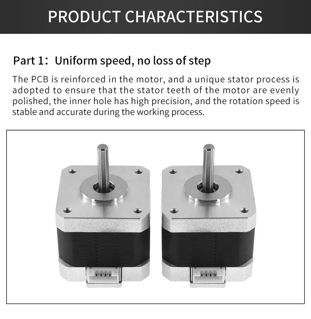 Двигатель имеет высокую общую стабильность, равномерную скорость вращения и низкий уровень шума через Kossel Prusa I3, Ultmaker, corexy и другие двигатели. Пользователи могут приобрести с уверенностью.
