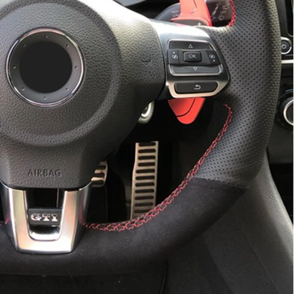 Чехол рулевого колеса автомобиля черная натуральная кожа замша для Volkswagen Golf 6 GTI MK6 VW Polo GTI Scirocco R Passat CC R-Line 2010