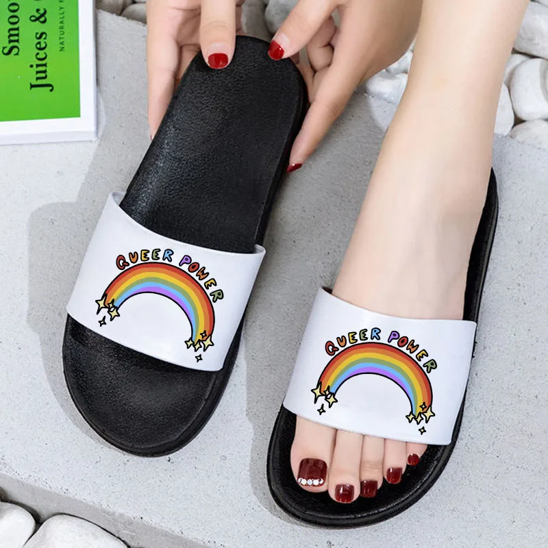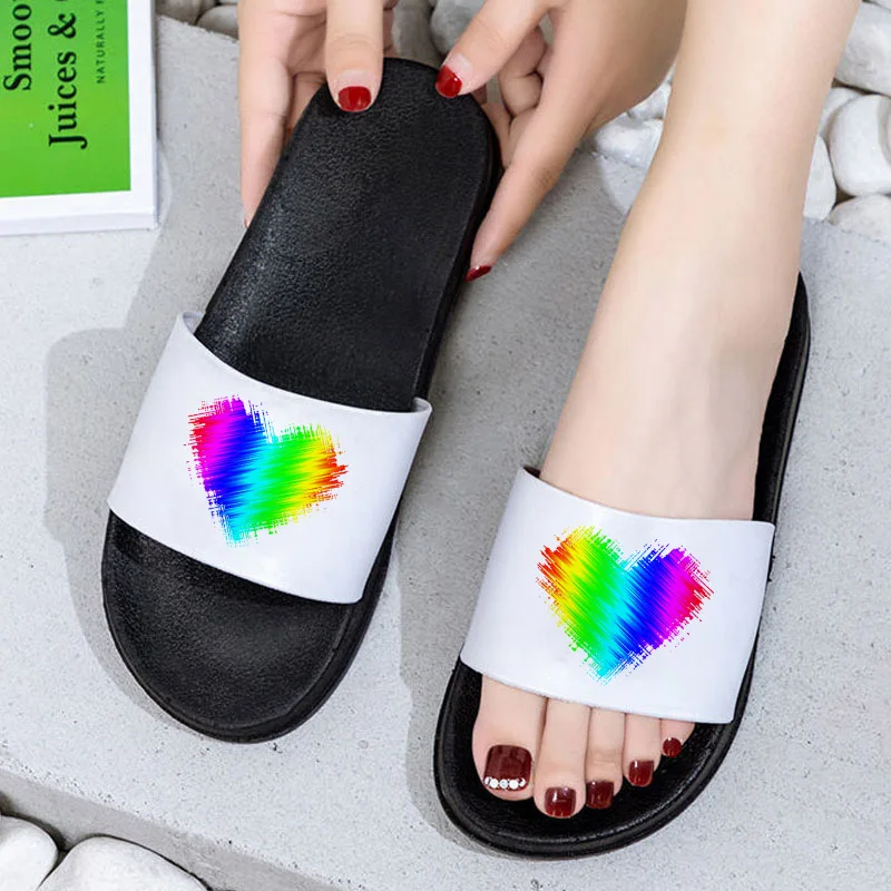 Модные летние женские тапочки с радужным принтом I Love Girls, шлепанцы с открытым носком, уличные тапочки, тапочки с индивидуальным рисунком