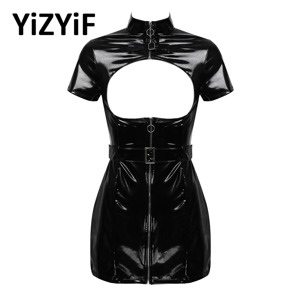 Особенности: Женское платье из лакированной кожи с вырезом на молнии; Платье с высоким вырезом и короткими рукавами и поясом. Мягкая ткань, дышащая, приятная для кожи, удобная на ощупь и в носке, позволяет вам чувствовать себя хорошо. Блестящий внешний вид, дизайн с вырезами, застежка на молнии, высокая горловина, короткий рукав. Сочетающийся пояс, идеально подчеркивает вашу очаровательную изгибу и делает вас горячим и привлекательным. Отлично подходит для повседневного вида, клуба, сцены, танцев на шесте, вечерние, вечерние.