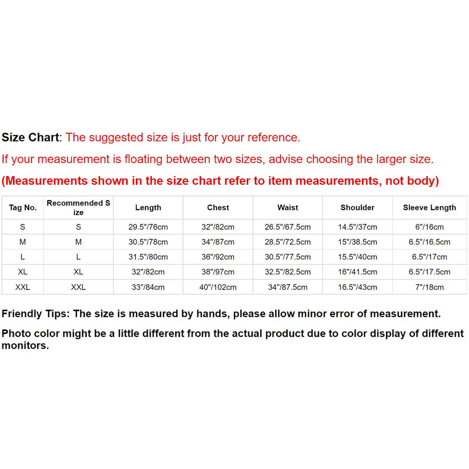 Таблица размеров:Рекомендуемый размер приведен исключительно в качестве справочной информации. Если под ваши замеры подходят два размера, мы рекомендуем выбрать больший размер.(Измерения, показанные в таблице размеров, относятся к измерениям товара, а не к телу)