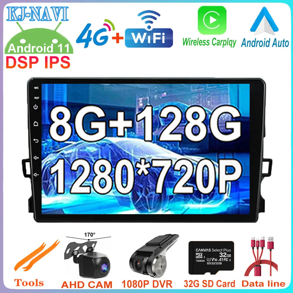 Автомобильный мультимедийный плеер, 8 + 128 ГБ, Android 11, 1280*72...