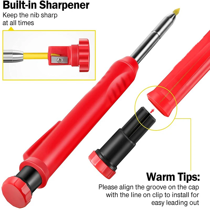 Твердый плотничный карандаш, заправляемые выводы, встроенная точилка, механический маркер для глубоких отверстий, инструмент для маркировки
