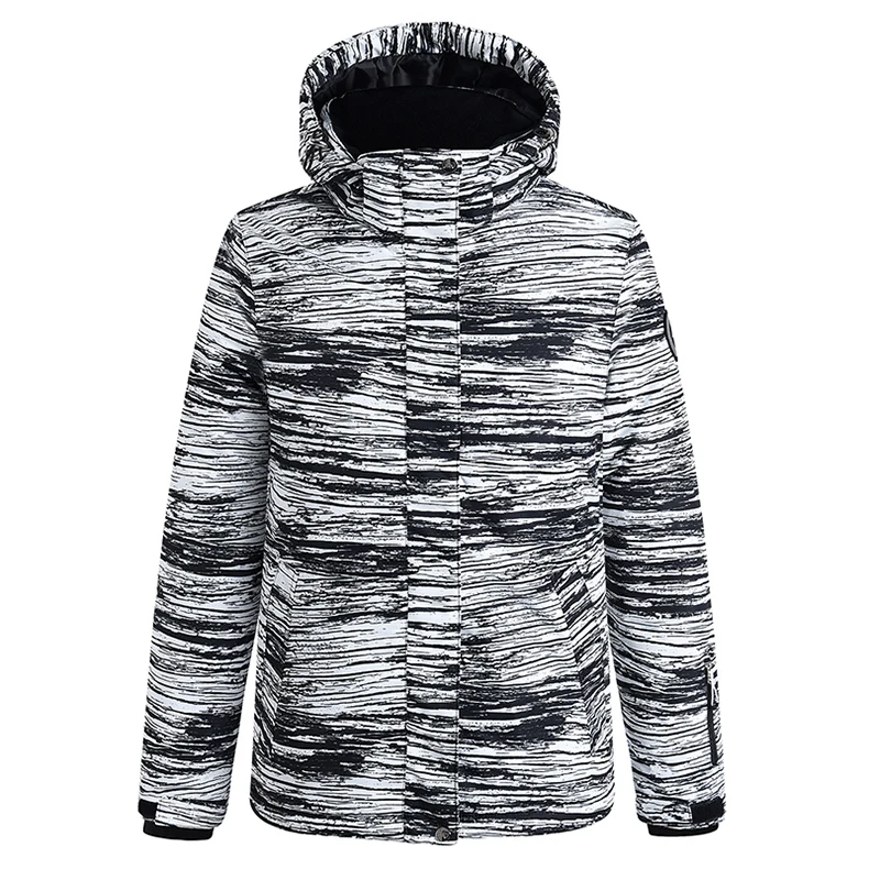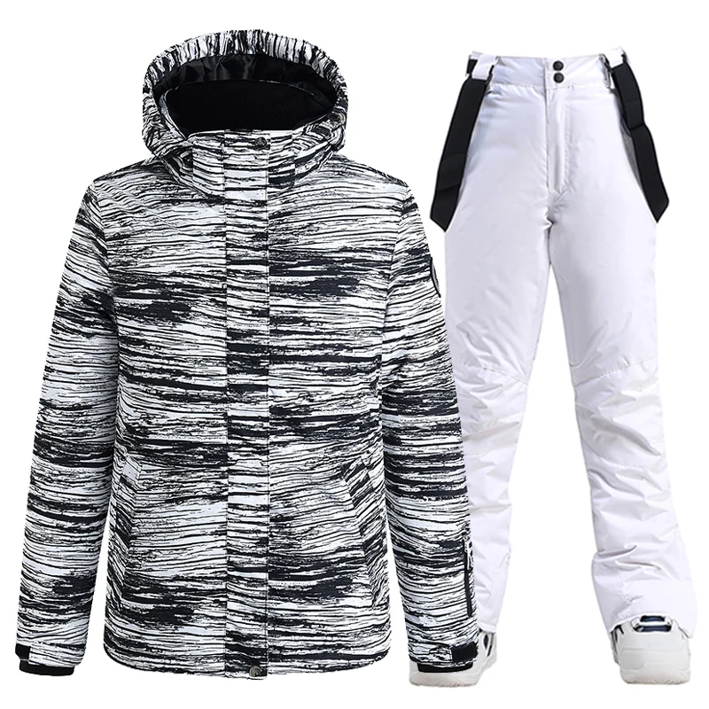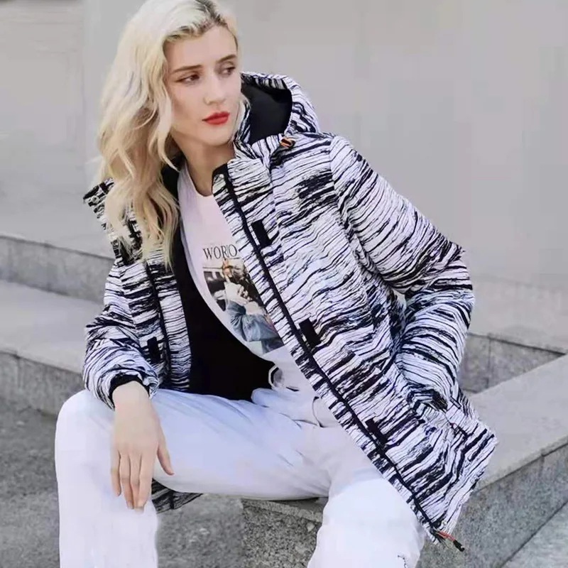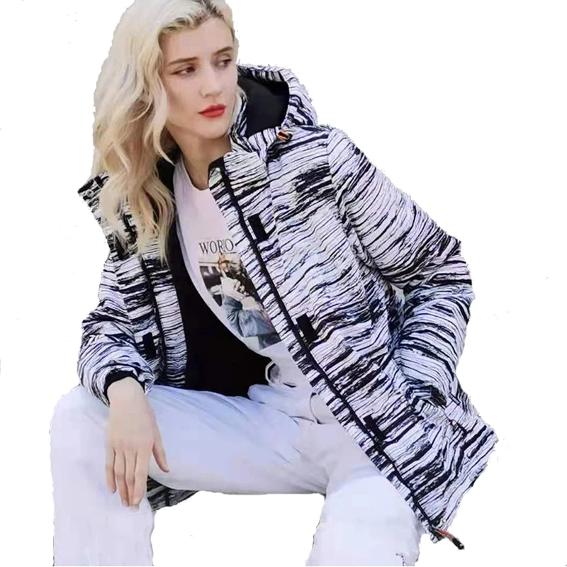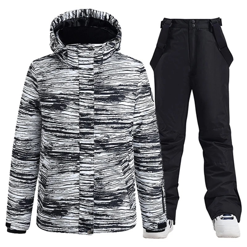 Женский зимний теплый костюм в черную полоску, зимний костюм для снега, комплект одежды для сноуборда, водонепроницаемые костюмы, лыжная куртка + брюки на бретелях