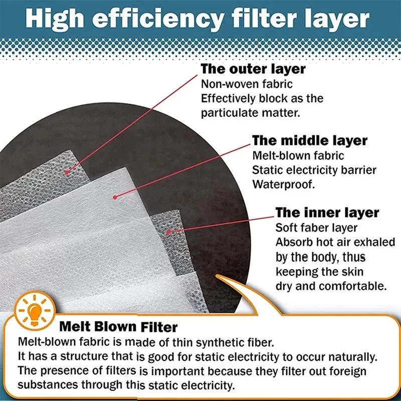 Material3 Layers,Non-woven fabric + melt blown filter fabric + spunlace fabric