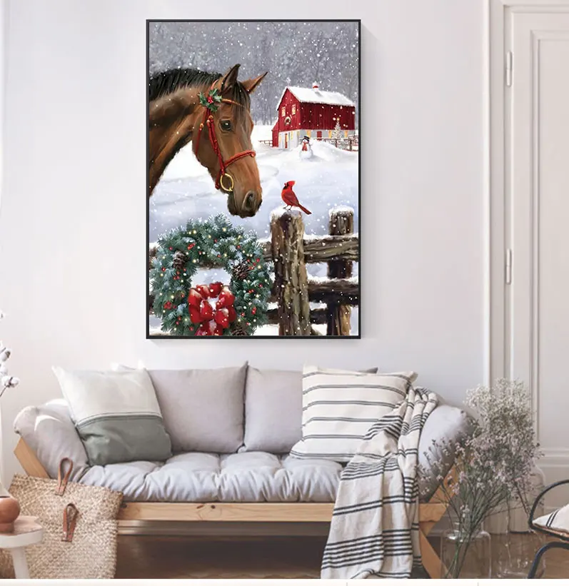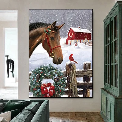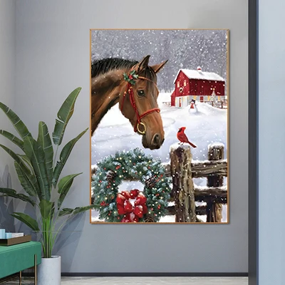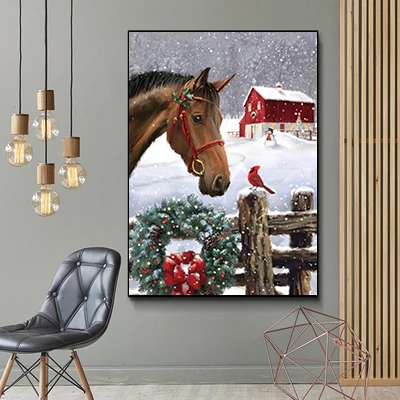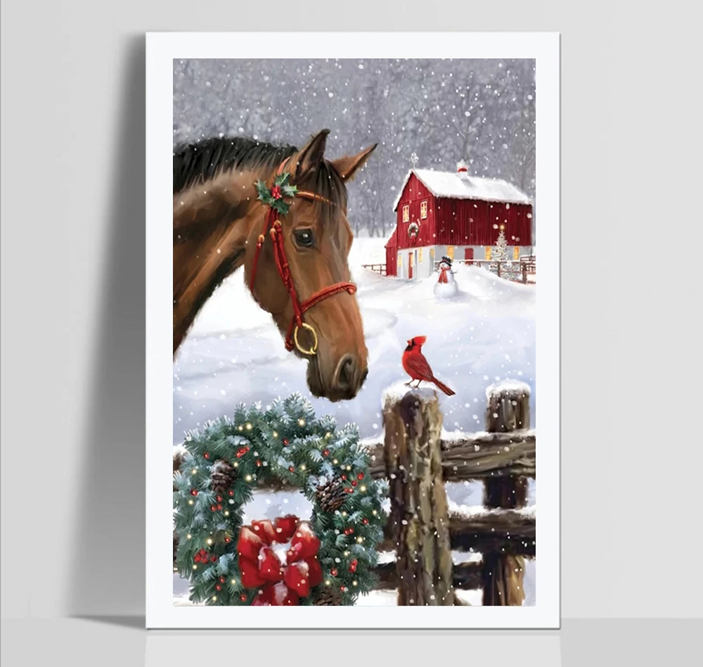 Алмазная живопись Nabi с лошадью, полная вышивка, алмазная вышивка с животными, вышивка крестиком, мозаика, Зимний Рождественский подарок ручной работы