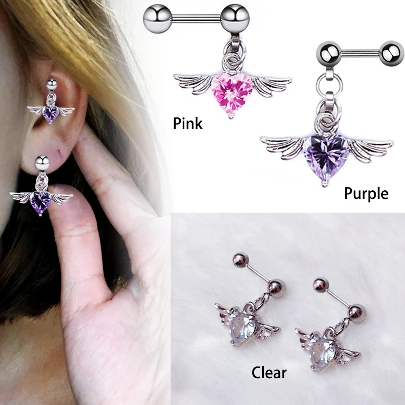 2022 Серьги-спирали для пирсинга внутреннего уха в виде крыла сердца Циркон Висячие серьги-гвоздики для пирсинга хряща Раковины Козелка Серьги Пирсинг из нержавеющей стали