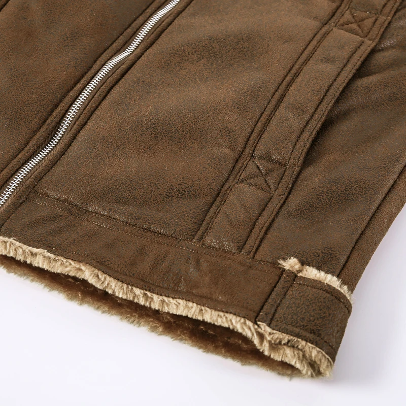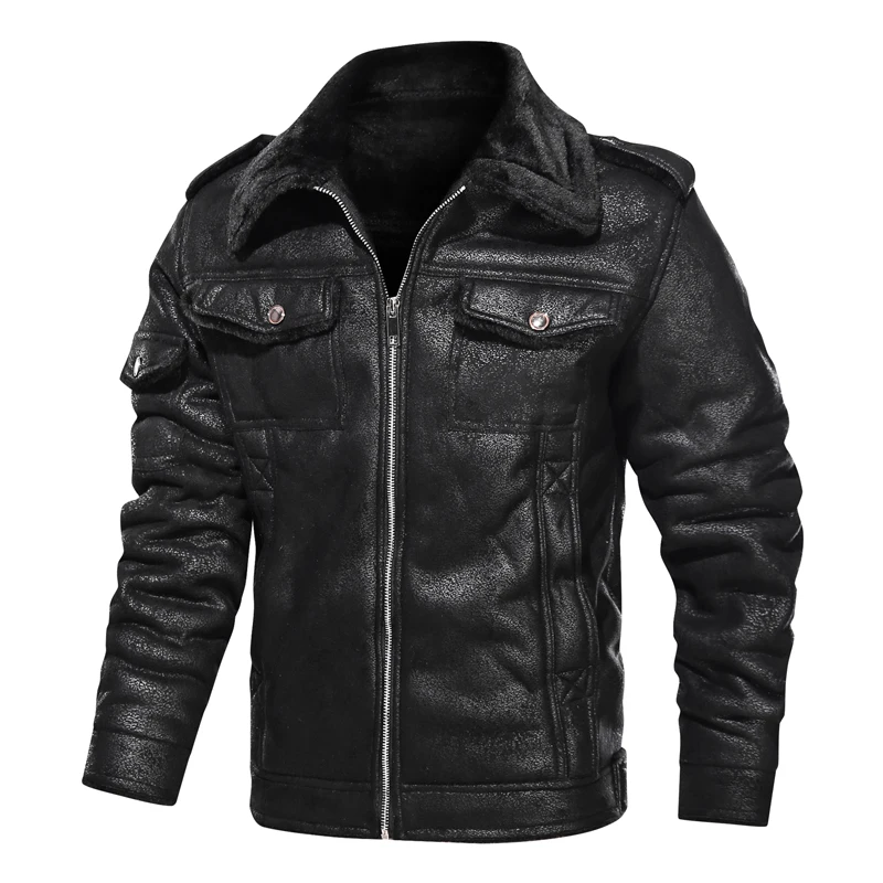 Мужская повседневная моторная куртка с отложным воротником, ретро меховая Флисовая теплая байкерская куртка, зимняя модная толстая верхняя одежда на молнии с несколькими карманами
