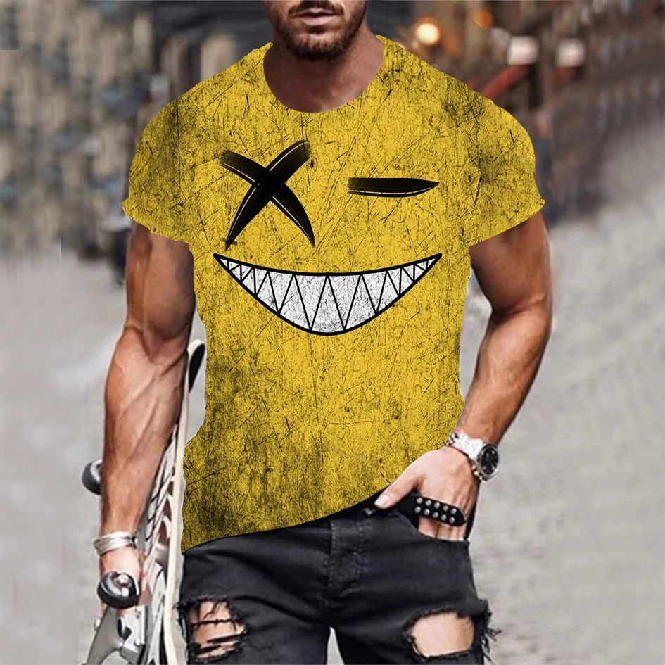 Новинка, Лидер продаж, мужские футболки, футболки с 3D рисунком смайлика, летние модные топы, Повседневная футболка с коротким рукавом и смайликом