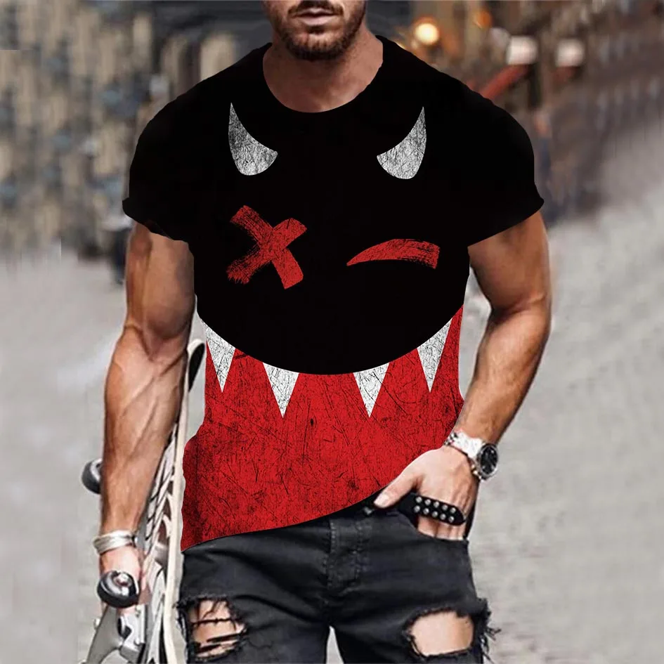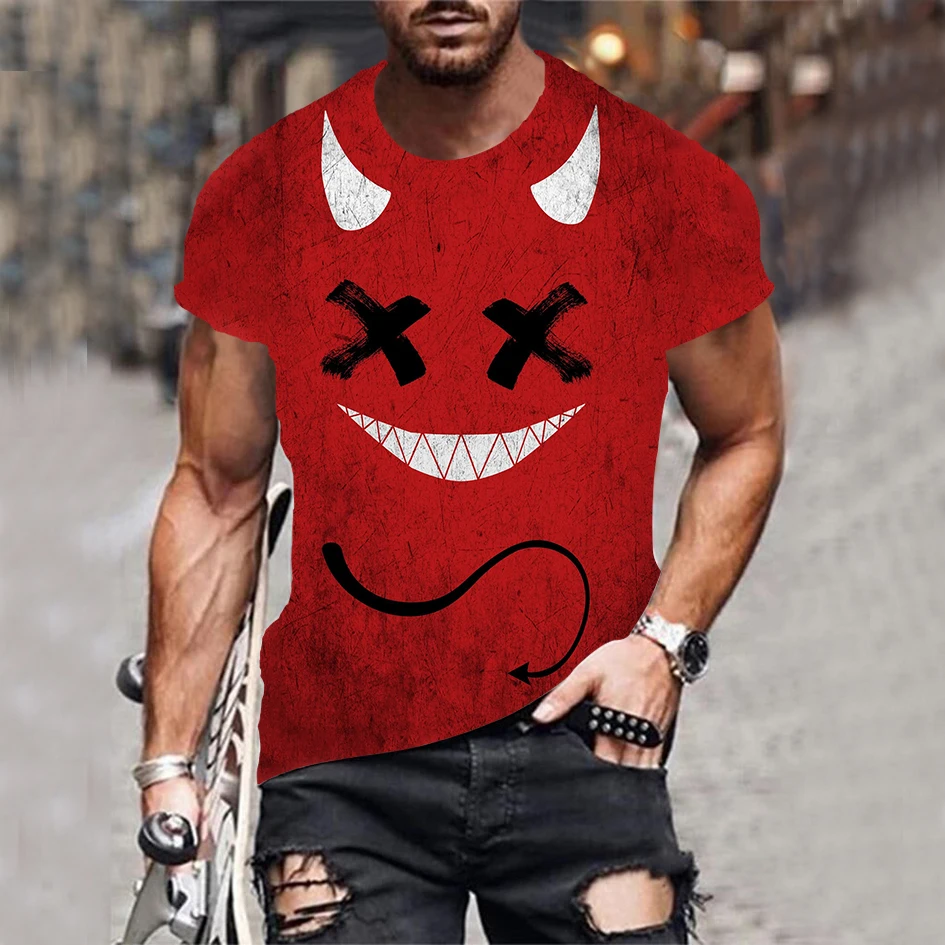 Мужская футболка с 3D-принтом зла и смайлика, Повседневная футболка...