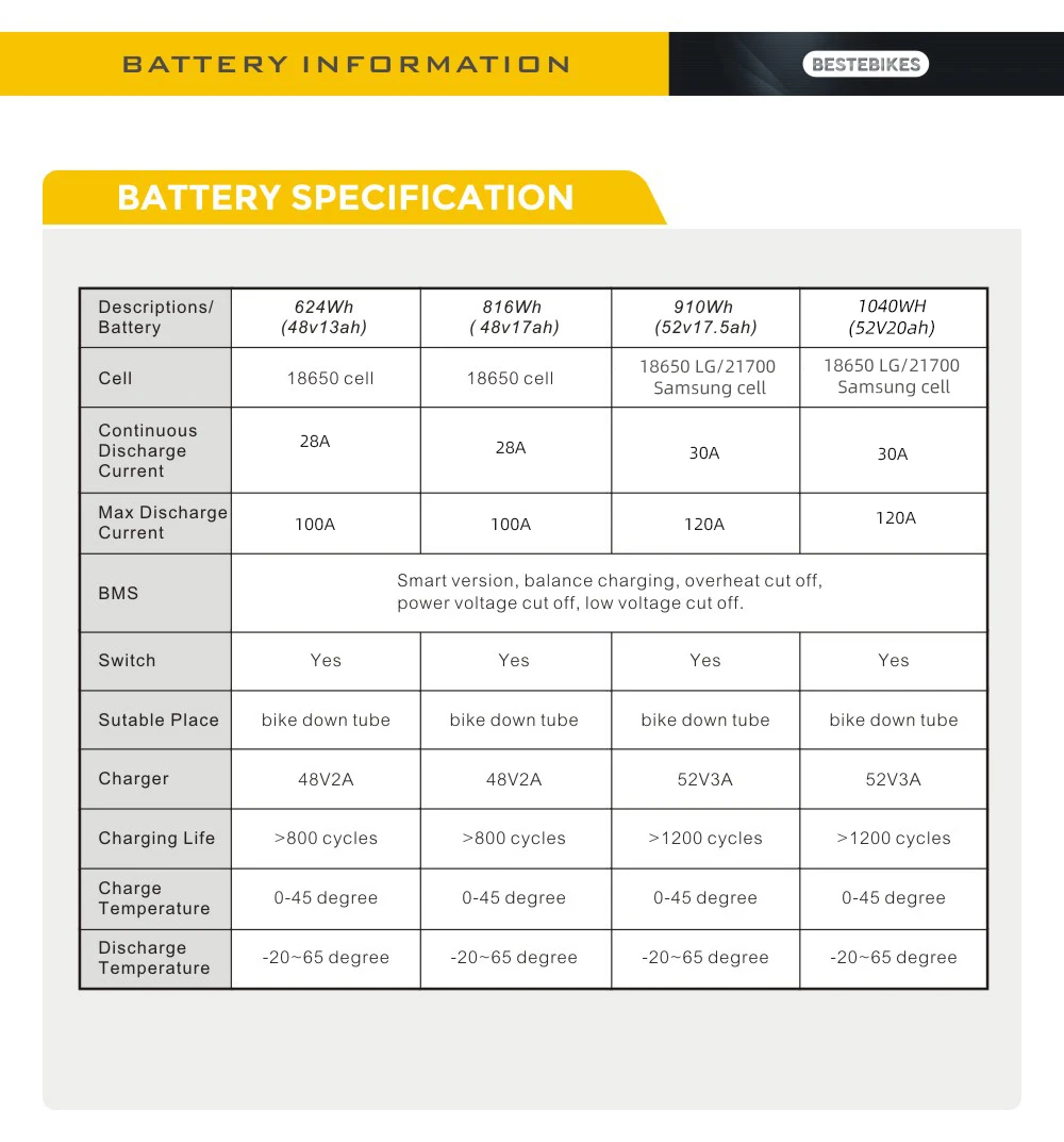 Battery ( AH)36V17AH /36V21AH/48V17AH/ 48V20AH / 52V17AH