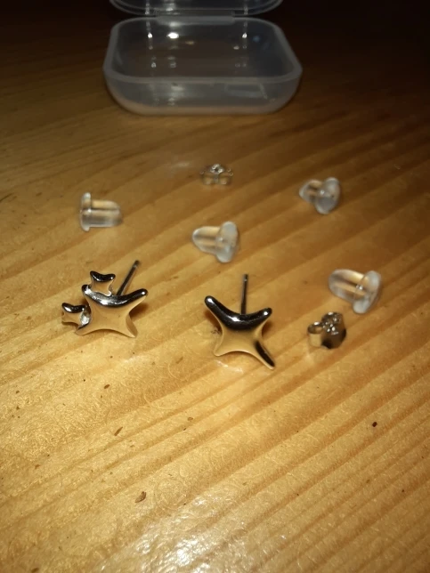 Очень нравятся эти серьги. Я заказал 2 пары из этого магазина, и они очень хорошо упаковали их в маленький пластиковый контейнер в почтовом ящике. Серьги поставляются с другой спинкой, как показано на картинке. Они очень маленькие, но я очень рад их носить. Как описано! Спасибо!