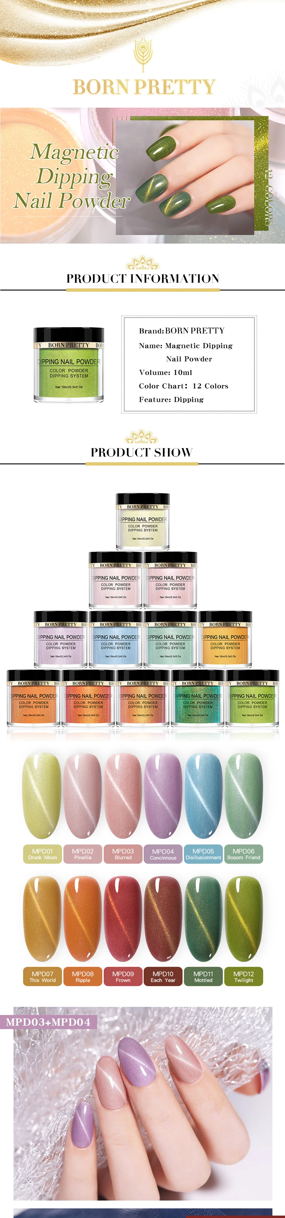 Порошок для ногтей BORN PRETTY с эффектом погружения, магнитный хамелеон с градиентом, глиттер для ногтей, глиттер, натуральный сухой декор для ногтей, 10 мл