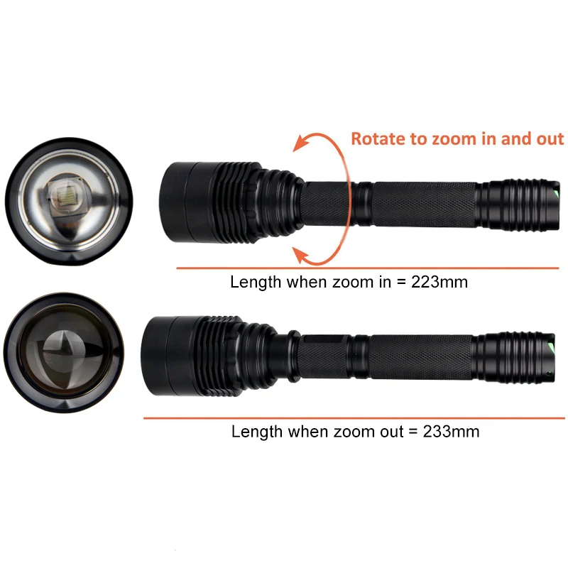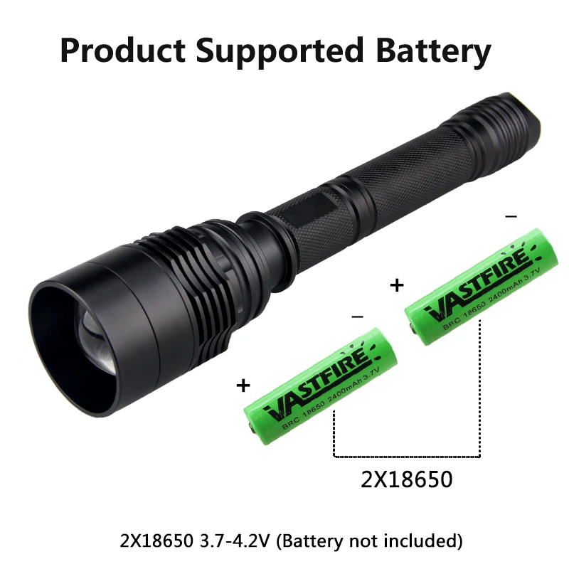 Масштабируемый охотничий светильникЭтот фонарь использует T6 светодиодный, производящий очень яркий светильникВыход яркий может достигать более 10000 люменовВнутренняя проводка применяет высокоэффективный усилитель цепи, и может использовать батареи в большой степениКорпус этого фонарика изготовлен из авиационного алюминиевого сплава, и он имеет очень прочную конструкциюЖесткая анодированная отделка; Анти-абразивный, не царапается, ударопрочныйХарактеристики:Тип эмиттера: T6 светодиодныйСветильник Цвет: зеленый светильникБатарея конфигурации: 2 х 18650 3,7 v Батарея (не входит в комплект)Расположение переключателя: ХвостСветодиодный срок службы: 100000 часовМатериал: алюминийОбъектив: стеклянный объектив с покрытиемОтражатель: Алюминиевый гладкий отражательЦвет корпуса: черный