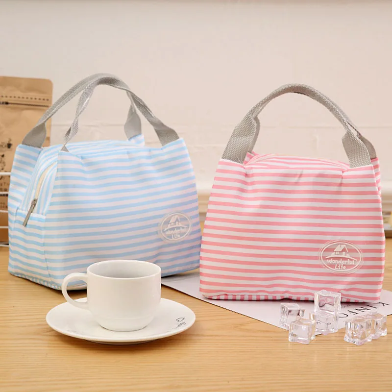 Упаковка: 1 шт полосатая изолированная сумка для холодного обеда