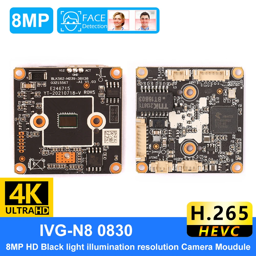 NT98566 SC8239 8MP H.265 HD IP плата модуля камеры 3840*2160 CMOS сети CMS XMEYE RTSP распознавание лица движения аудио динамик