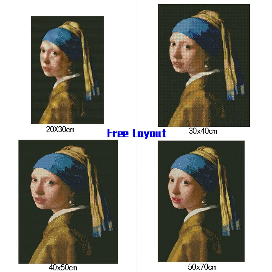 Алмазная вышивка Девочка с жемчугом, картина из квадратныхкруглых с...