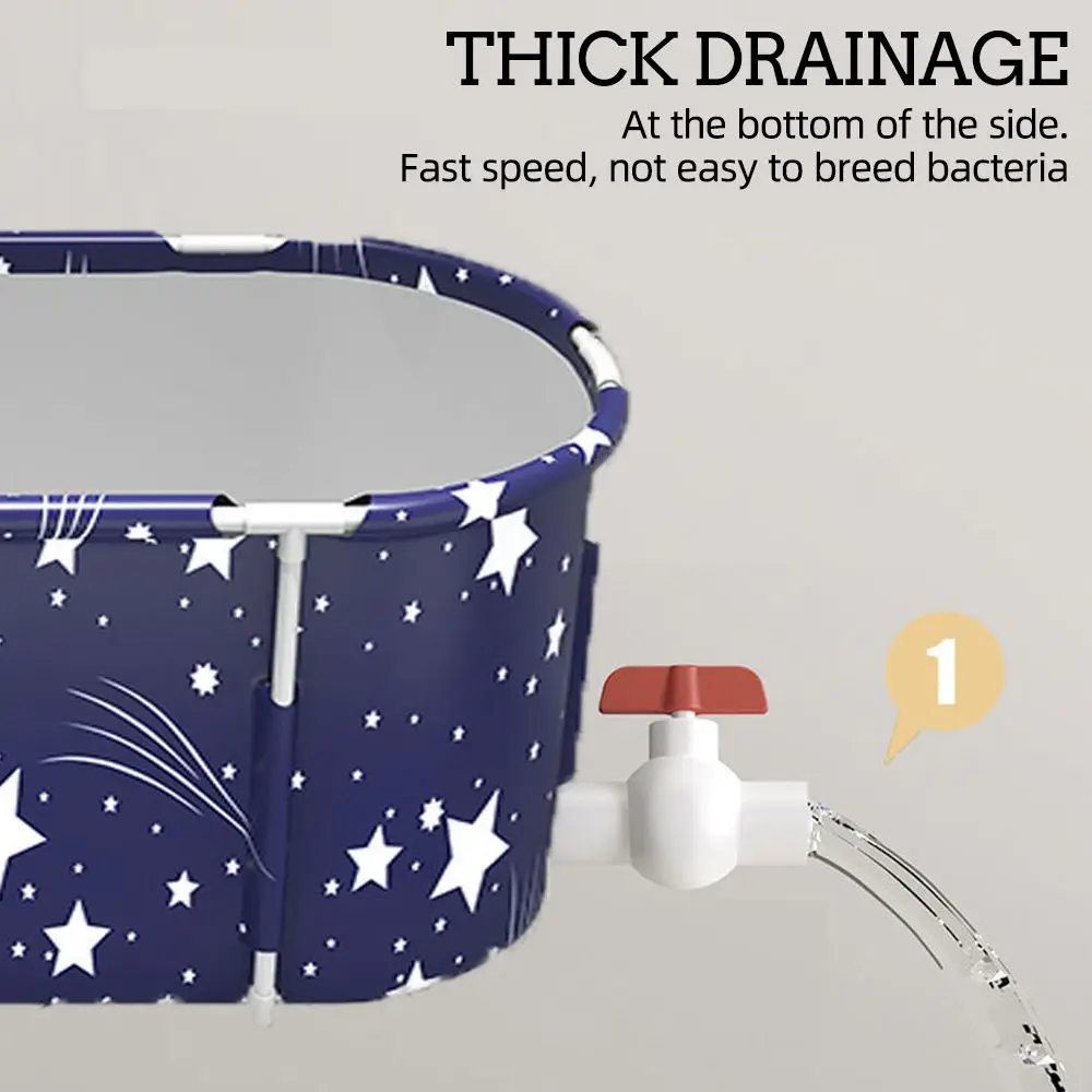 Особенности товара:Тип: Складная ВаннаСтили: Звездное небоЦвет: темно-синийМатериал: водонепроницаемый ПВХРазмер A: 118x55x50 см/46,5x21,7x19,7 дюймов