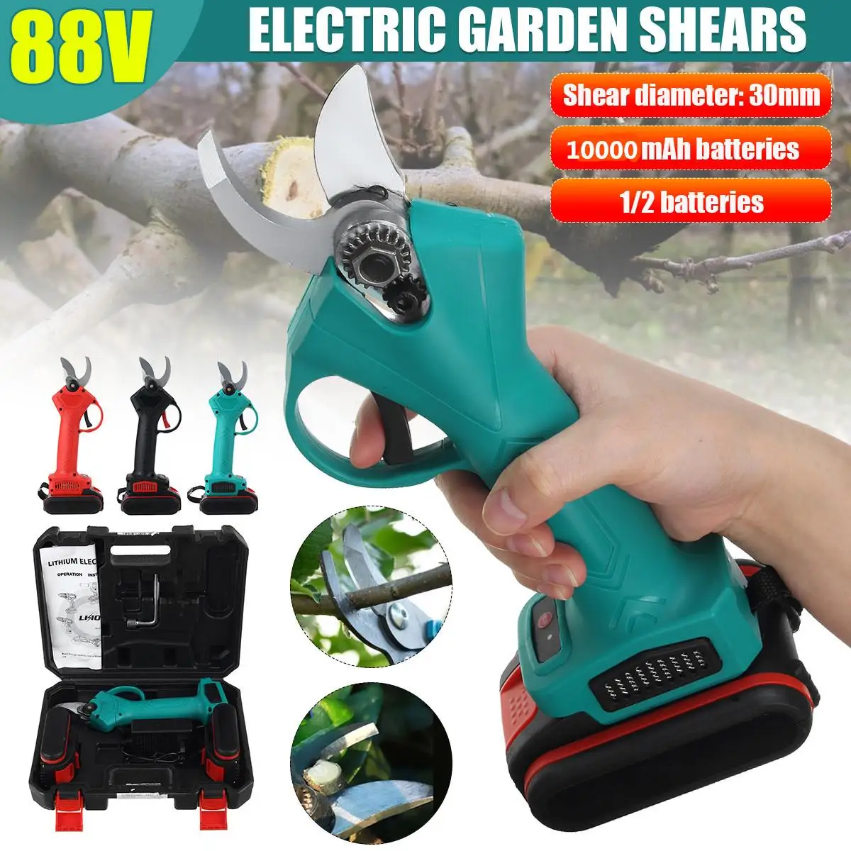 Электрические садовые ножницы 88V перезаряжаемые электрические ножницы для обрезки ветки резак садовый инструмент