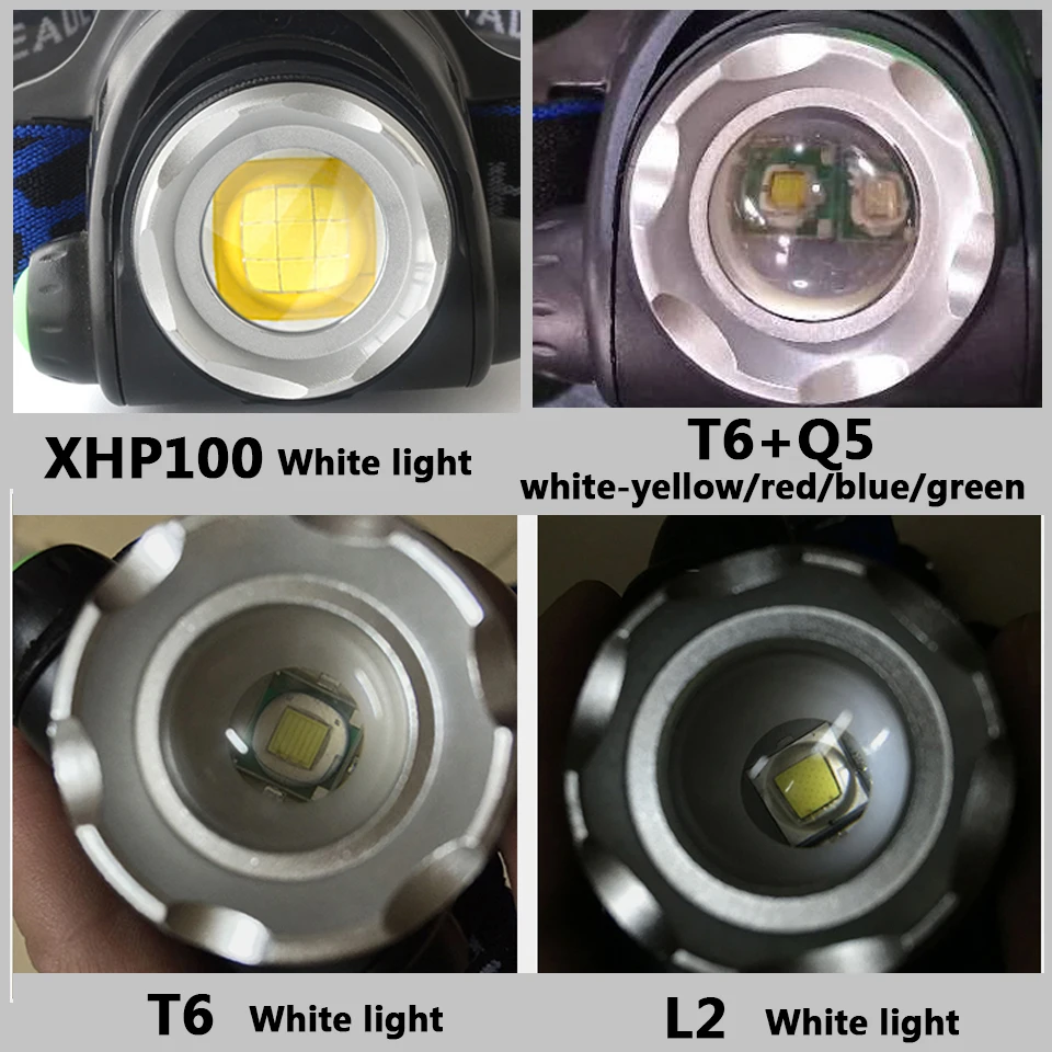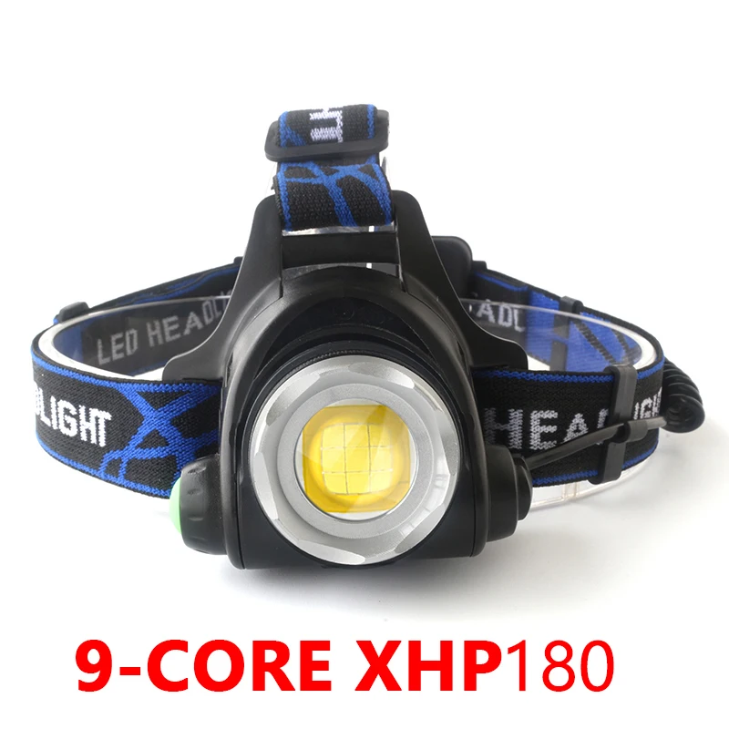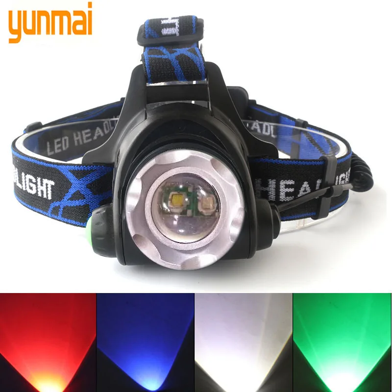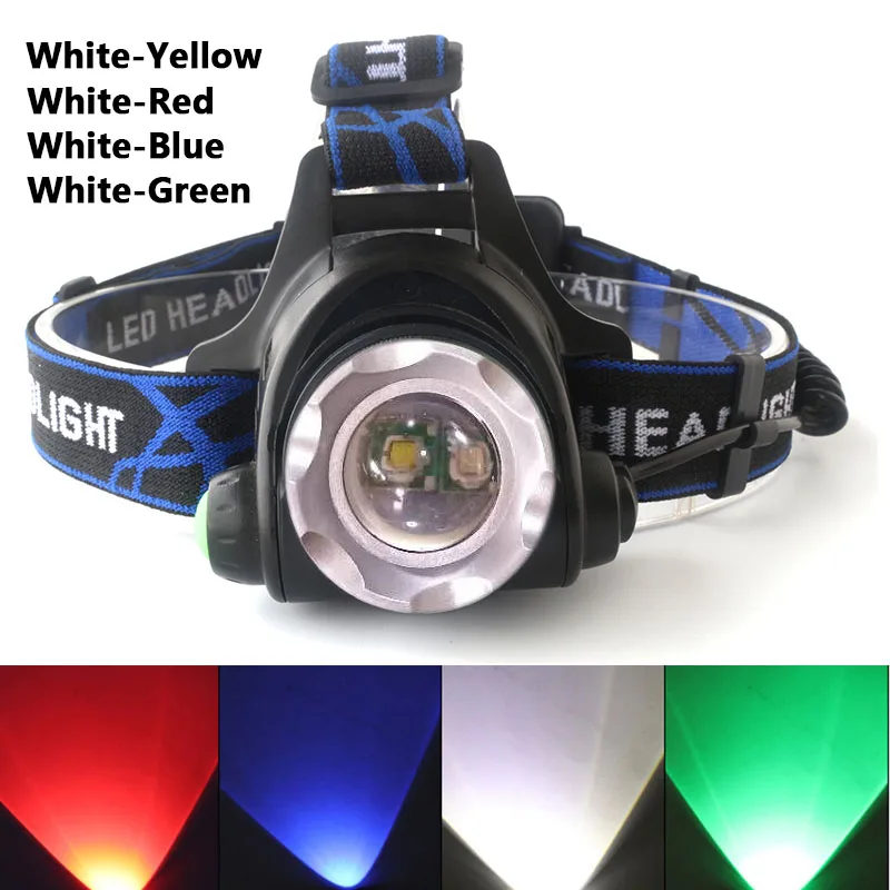 Мощный 9-ядерный 4-х цветный светодиодный налобный фонарь XHP100, U...