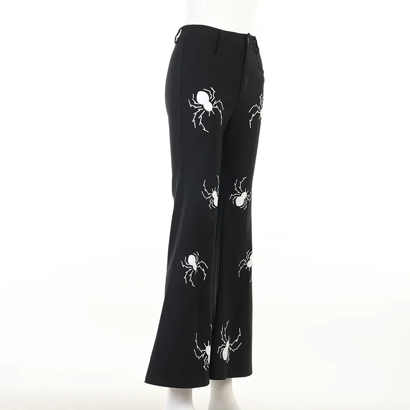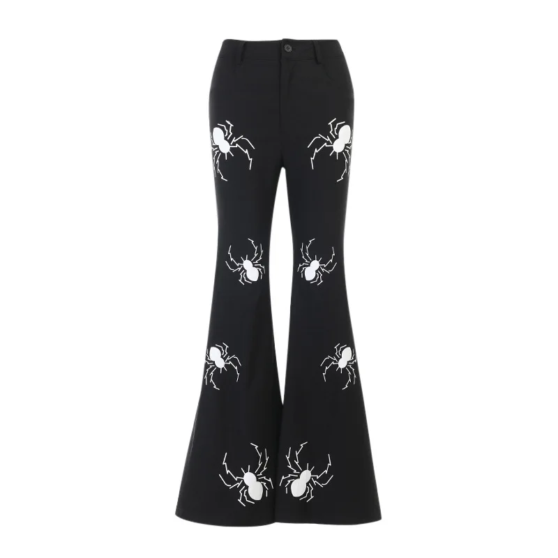 Брюки Y2K женские расклешенные с принтом паука, модные штаны с широкими штанинами в готическом стиле, повседневные брюки в стиле Харадзюку, штаны с завышенной талией, Осень-зима