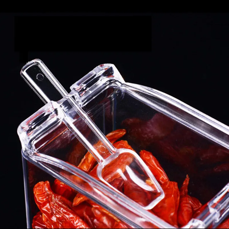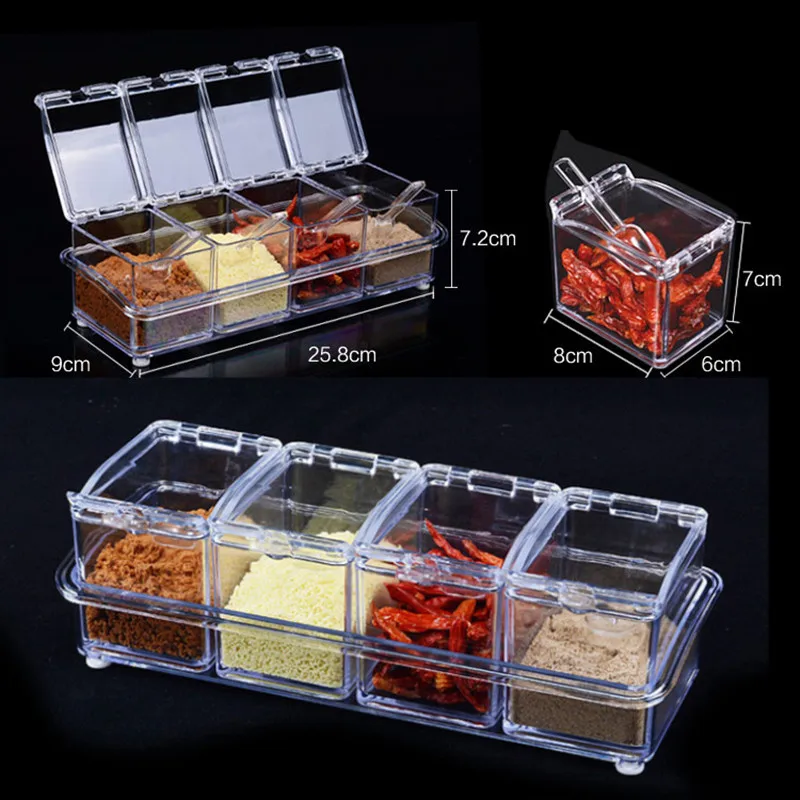 4 шт.компл. компактная портативная коробка для приправ, коробка для хранения специй, прозрачная кухонная коробка для приправ, сахарной соли, четыре ячейки с ложкой