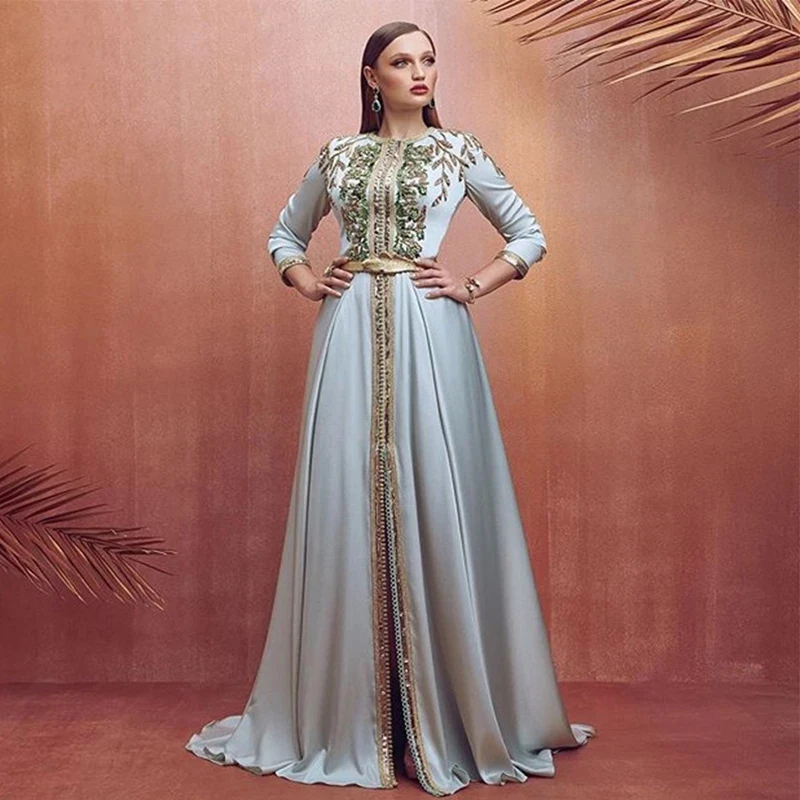 Aixiangsha зеленый марокканский кафтан вечернее платье, платье с ра...