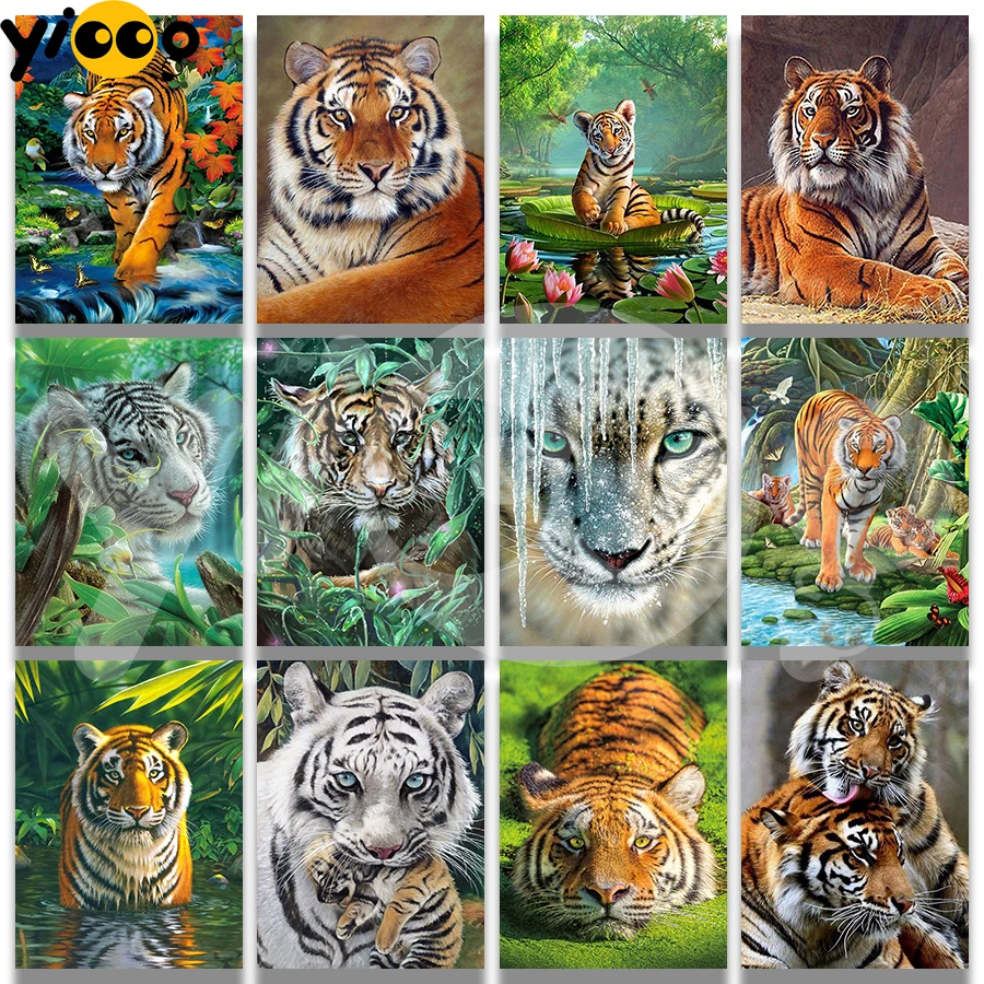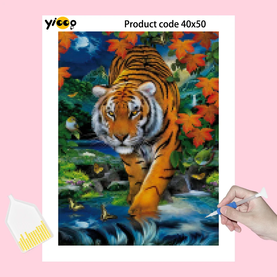 Квадратнаякруглая Алмазная вышивка 5D с изображением тигрового леса