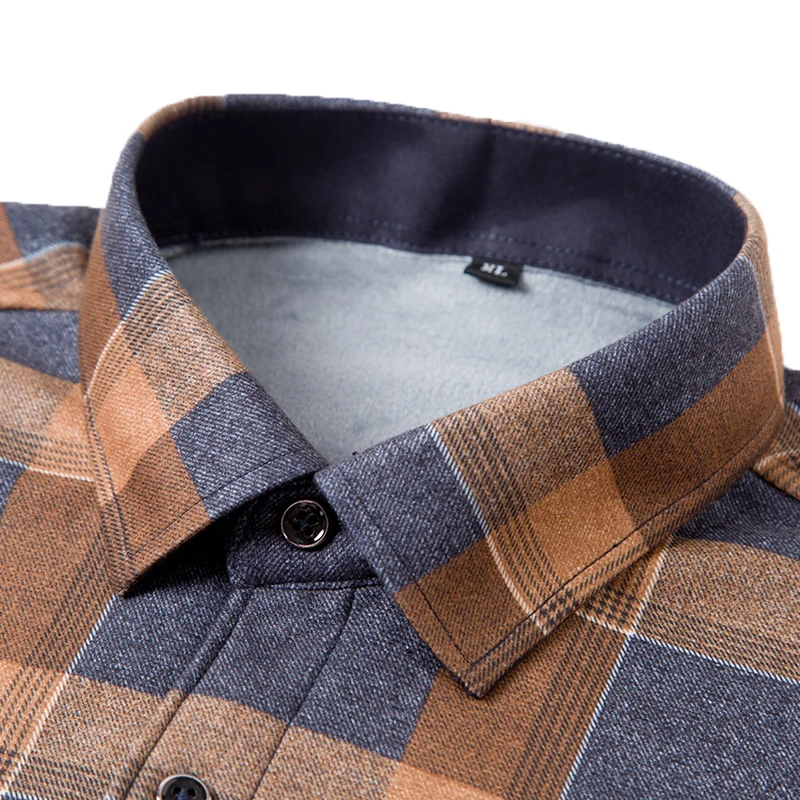 Мужская флисовая рубашка с длинным рукавом, в клетку