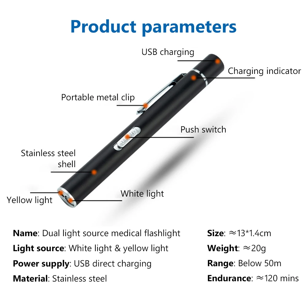 USB перезаряжаемая медицинская ручка светильник мини-фонарик для ко...
