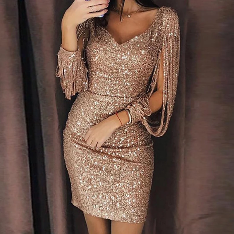 Ажурное лоскутное платье с длинным рукавом и блестками, соблазнительное женское однотонное мини-платье-футляр с V-образным вырезом, женское облегающее платье на весну и осень